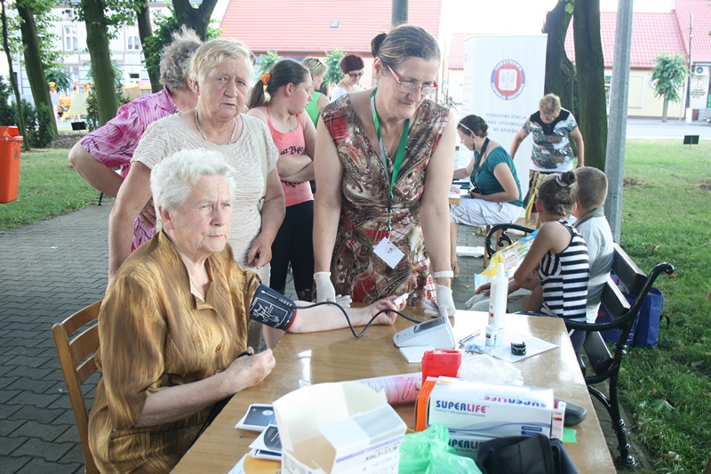 Mieszkańcy mogli skorzystać ze stoisk na których można było zbadać poziom cukru we krwi oraz dokonać pomiaru ciśnienia tętniczego krwi. Badania przeprowadzała Mirosława Krawiec-Gronikowska pielęgniarka środowiskowa, a jednocześnie członek Komisji. Natomiast Anna Węclewska pracownik SANEPID-u we Wrześni udzielała informacji na temat AIDS, HIV, określała współczynnik masy ciała /BMI/ oraz zapraszała do skorzystania z bezpłatnego badania mammograficznego we Wrześni. Przy stoisku Powiatowej Stacji Sanitarno - Epidemiologicznej można było także sprawdzić jak funkcjonuje nasz organizm kiedy jesteśmy pod wpływem alkoholu zakładając alkogogle.