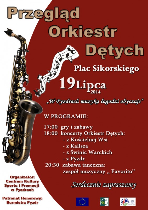 Przypominamy, iż Przegląd Orkiestr Dętych zrealizowany został w ramach projektu „W Pyzdrach muzyka łagodzi obyczaje”, którego celem jest kultywowanie i podtrzymywanie miejscowych tradycji, obrzędów i zwyczajów. A dotację na ten cel otrzymało Centrum Kultury Sportu i Promocji w Pyzdrach z Departamentu Programów Rozwoju Obszarów Wiejskich Urzędu Marszałkowskiego Województwa Wielkopolskiego w Poznaniu.