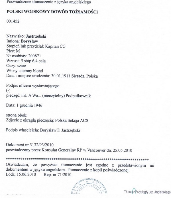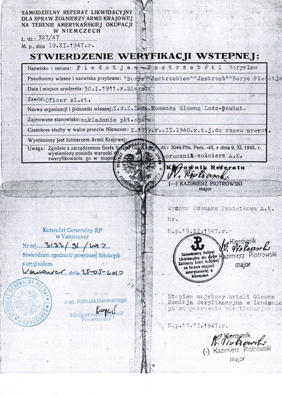 Notatkę sporządziła Anna Żyźniewska - Musiałowicz, siostrzenica Borysława Fiedotjew Jastrzembskiego