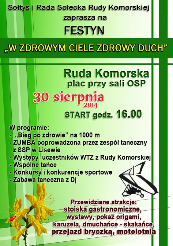 „W zdrowym ciele zdrowy duch” pod takim hasłem odbył się sobotni festyn w Rudzie Komorskiej. Wydarzenie promowało zdrowy styl życia. Sołtysowi wsi Ryszardowi Urbaniakowi wsparcia w organizacji udzieliło Stowarzyszenie Mecenat.