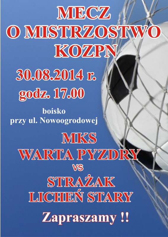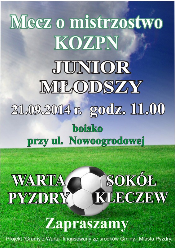 W niedzielę o godz. 11.00 młodsi zawodnicy Warty Pyzdry zmierzą się z Sokołem Kleczew. Mecz rozegrają na boisku przy ul. Nowoogrodowej.