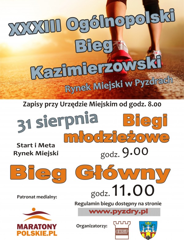 Informujemy, że 31 sierpnia odbędzie się XXXIII Ogólnopolski Bieg Kazimierzowski.