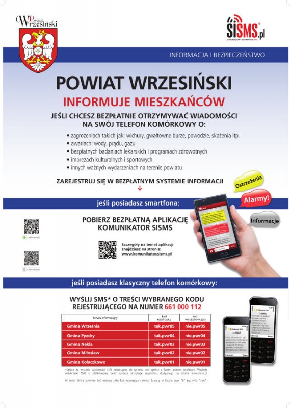 Samorządowy Informator SMS – bo tak nazywa się ten system – to rozwiązanie, które pozwala na informowanie mieszkańców o zagrożeniach, konieczności ewakuacji wskutek zaistniałych zdarzeń oraz innych ważnych wydarzeniach na terenie powiatu wrzesińskiego.