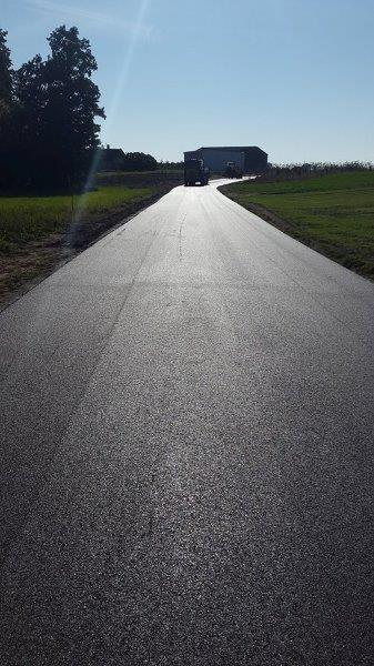- wykonaniu jezdni o szer. 5,00 m, nawierzchni z betonu asfaltowego, dwuwarstwowej, tj. warstwy ścieralnej o gr. 3 cm i warstwy wiążącej o gr. 4 cm,