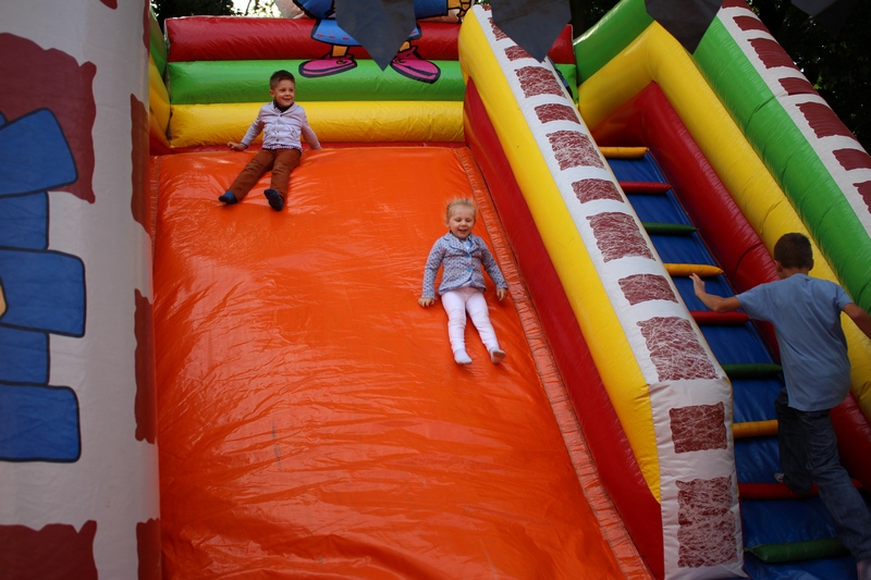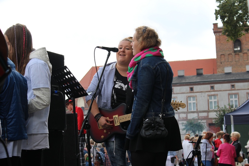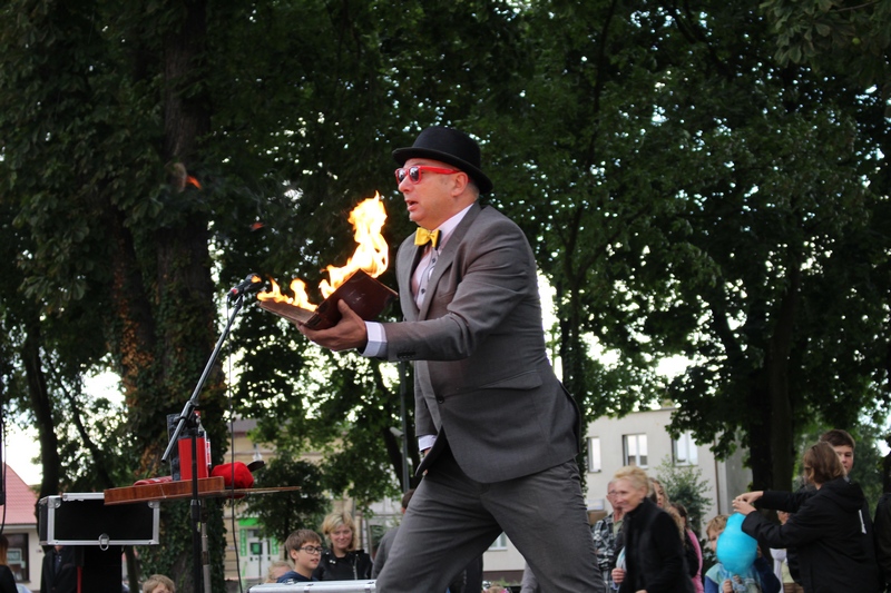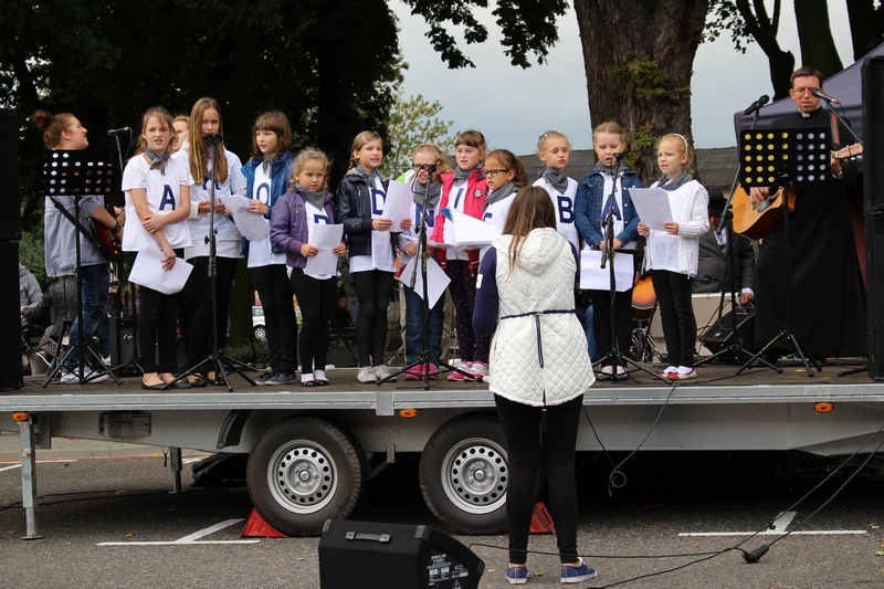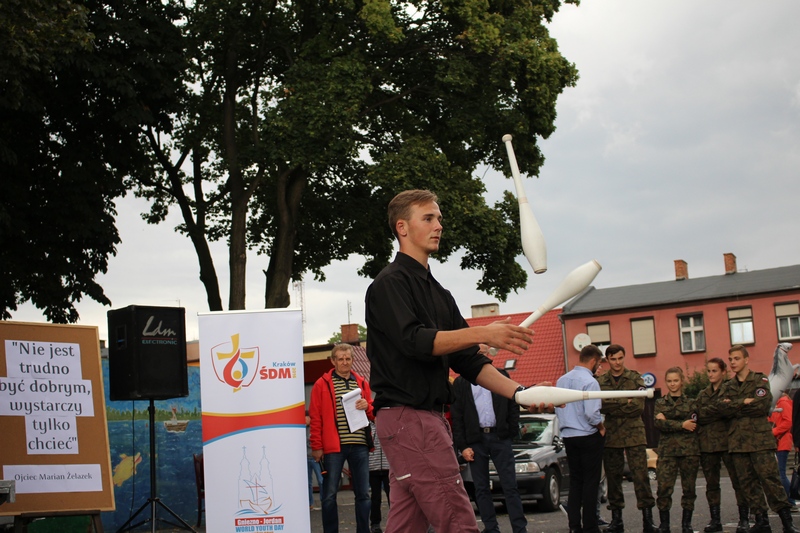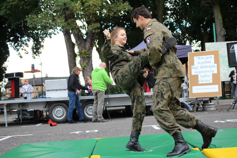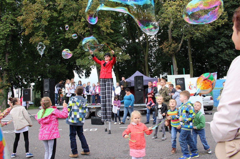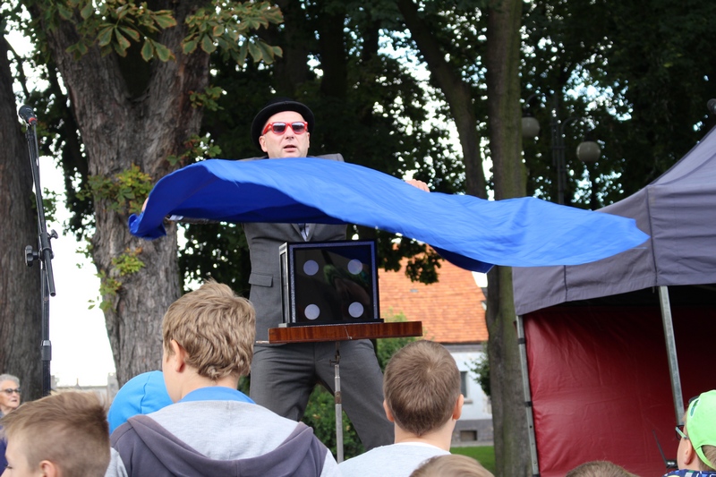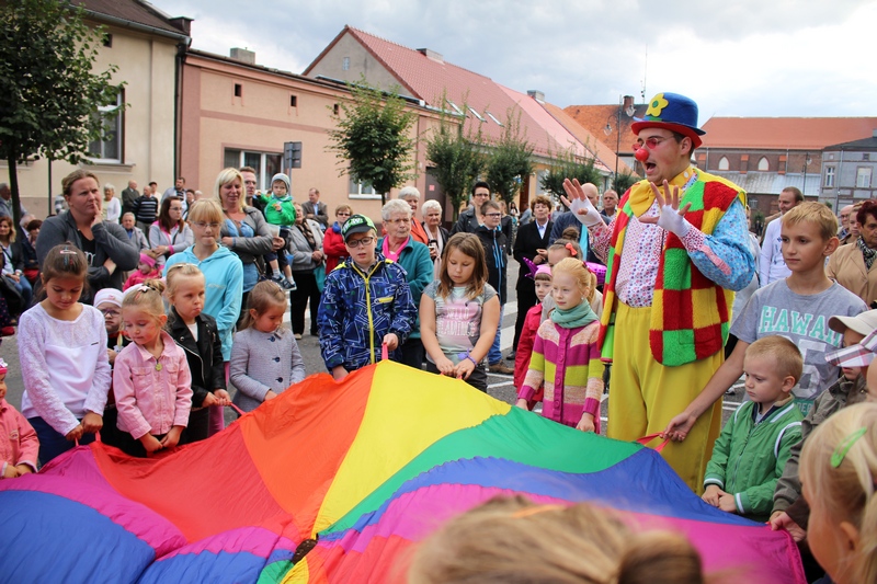Po niedzielnej Mszy św. wierni zgromadzili się na rynku, by korzystać z wielu atrakcji. Każdy mógł znaleźć coś dla siebie, bo to przecież festyn rodzinny. Ks. Proboszcz Ryszard Kopczyński przywitał zebranych życząc sobie i innym dobrej zabawy. Śpiewająco jako pierwsza na scenie zaprezentowała się grupa Motylków z przedszkola, a także Maja Jercha i Weronika Czerwińska. Chwile po nich mikrofony przejął Akord Nieba wraz ze scholą i ks. Pawłem Haczyńskim. W związku ze zbliżającymi się Światowymi Dniami Młodzieży w Krakowie, grupa wolontariuszy ze Strzałkowa zachęcała do włączenia się w akcję „Bilet dla Brata”. Swoje umiejętności z zakresu samoobrony prezentowali uczniowie szkoły o profilu wojskowym ze Wrześni. O zabawę przede wszystkim dla dzieci zadbała grupa animatorów: szczudlarz, żongler, iluzjonista i klaun Kuki. Zgodnie możemy stwierdzić, że mieszkańcy naszej gminy posiadają świetne poczucie humoru. Nie lada gratką były odwiedziny Klubu Miłośników Syren i Warszaw z Nekli. Mogliśmy dzięki nim podziwiać piękne cudeńka z czasów PRL-u od Syreny po Trabanta. A nieco nowocześniejszą niespodzianką były motocykle. Znalazł się wśród nich również najmłodszy miłośnik szybkiego sprzętu Bartek Jankowski.