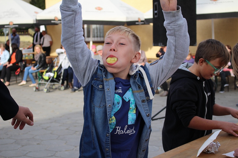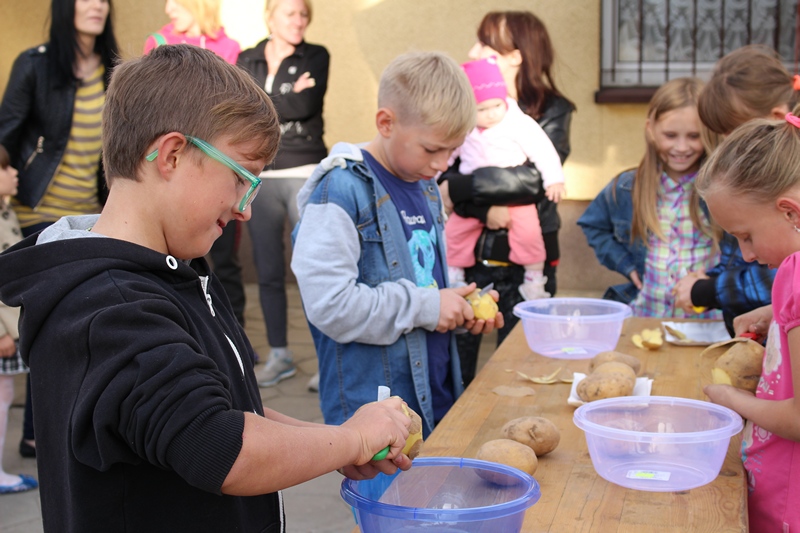 Po części oficjalnej przyszedł czas na zabawy. Na gości czekały konkursy z ,,pyrką'' w roli głównej. Ziemniaki były m.in: jedzone, zamiatane oraz tarte.