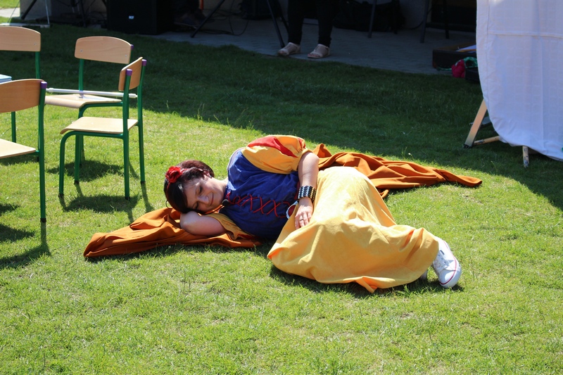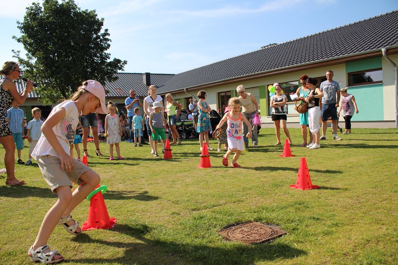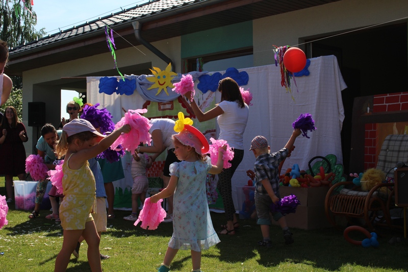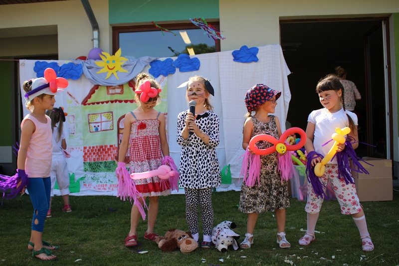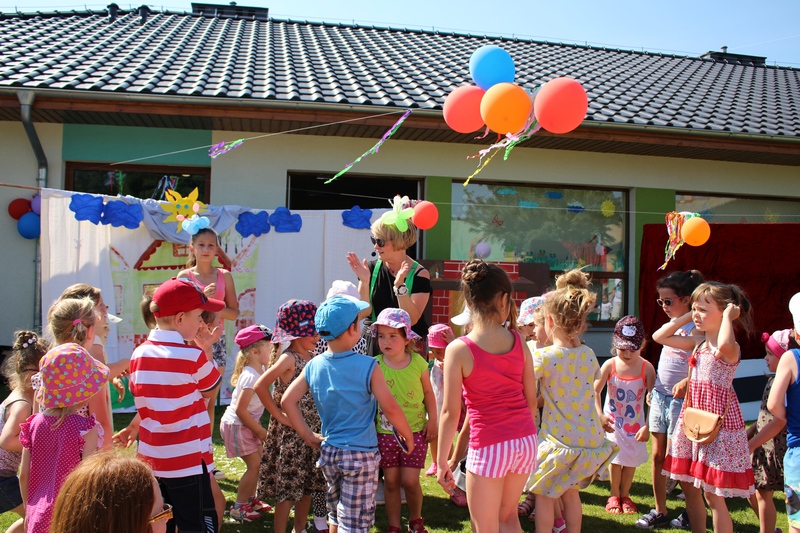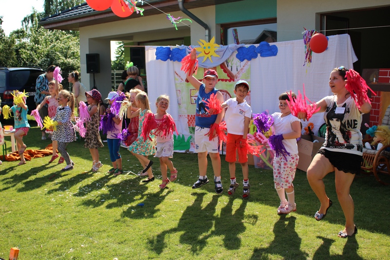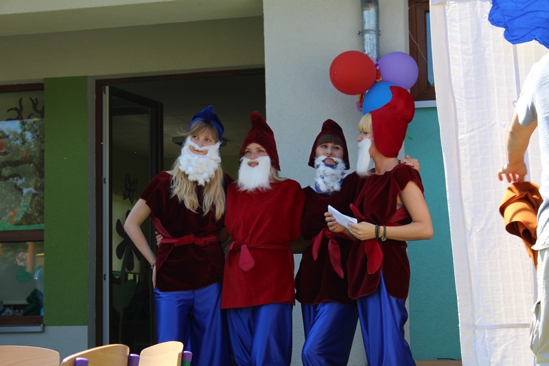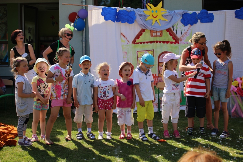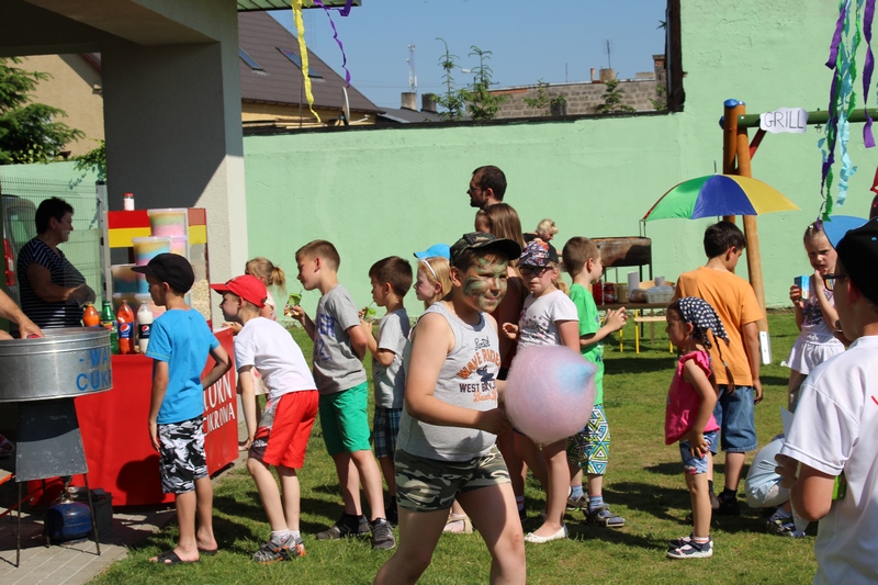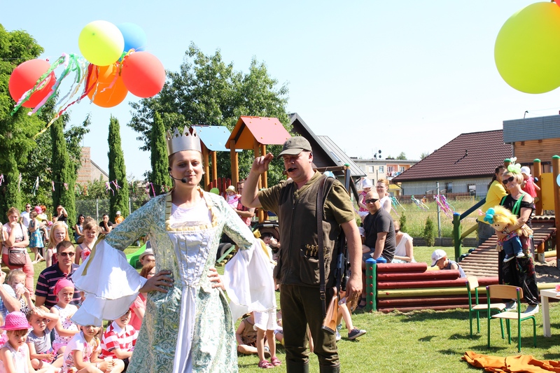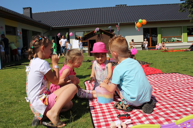 Festyn rozpoczął spektakl przygotowany przed rodziców i wychowawców grup przedszkolnych. Bajka o Królewnie Śnieżce i 7 Krasnoludkach była wystawiona po raz drugi. W postacie bajkowe wcielili się sami rodzice i wychowawcy wraz z dyrektorem placówki. Dzieci z zaciekawieniem słuchały przedstawienia. Kolejną częścią programu był występ finalistów Konkursu Piosenki Bajkowej. Najmłodsi bez żadnych problemów przedstawili swoje zdolności wokalne przed tak liczną publicznością. Pokazali w ten sposób, że trema im niestraszna. Na najmłodszych uczestników zabawy czekało wiele niespodzianek: balony, słodkości, malowanie twarzy. Nie mogło zabraknąć swojskiego jadła, kiełbaski z grilla czy słodkości. Największe kolejki ustawiały się do waty cukrowej i popcornu.