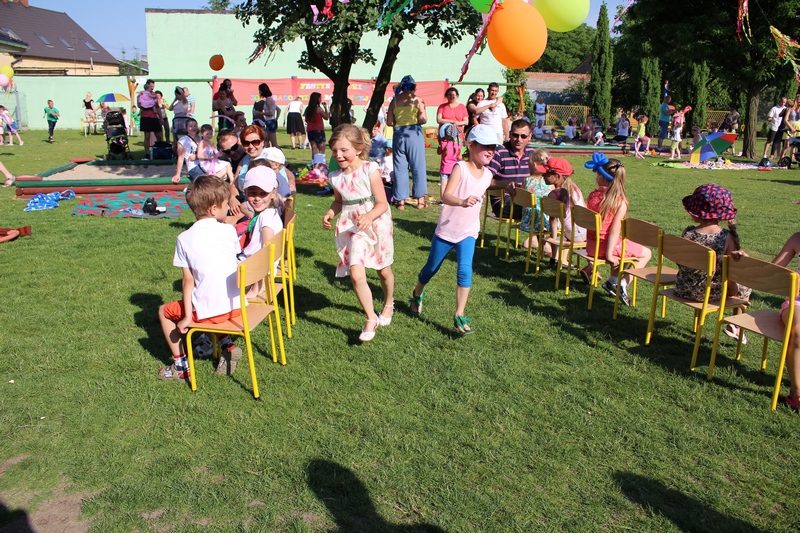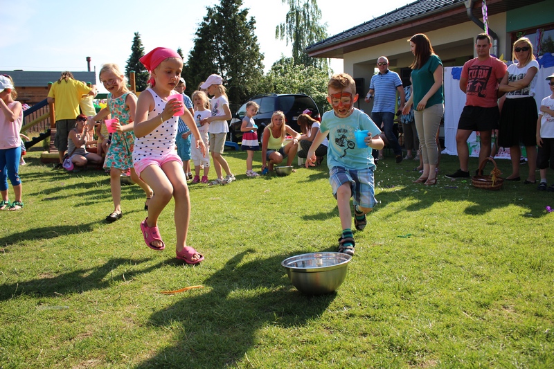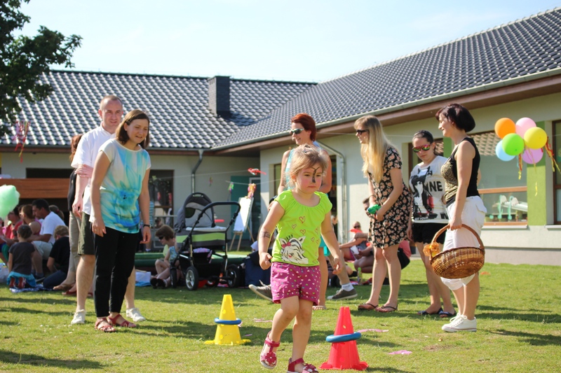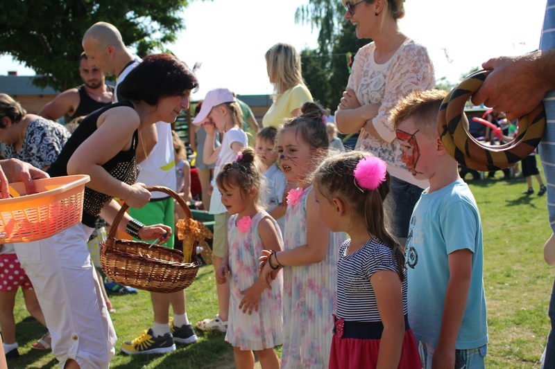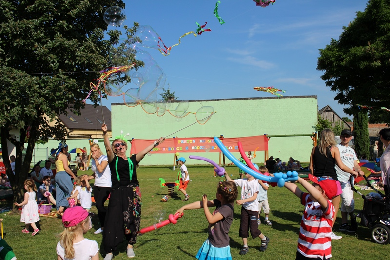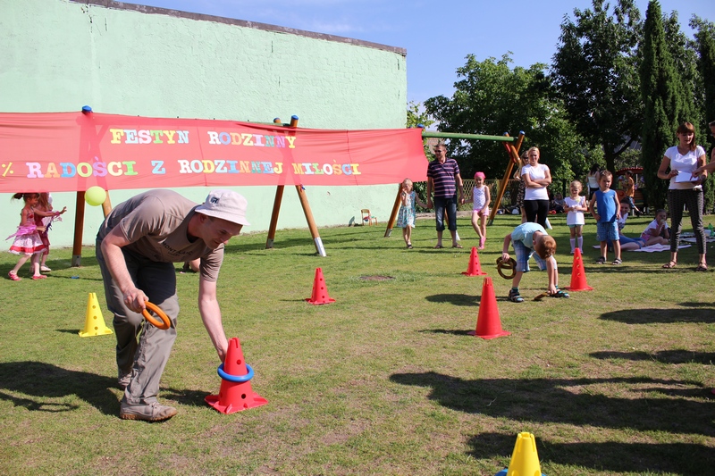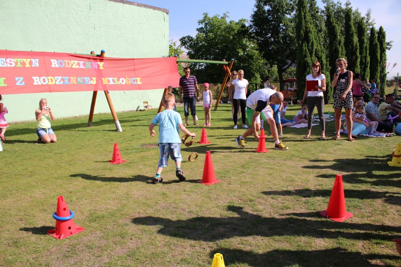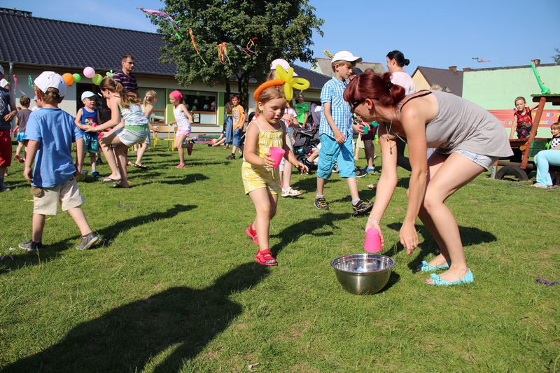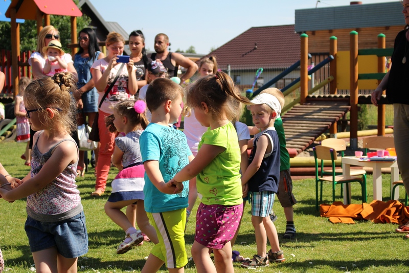 Nie tylko dzieci mogły tego dnia liczyć na świetną zabawę. Dla całych rodzin przygotowano konkurencje sprawnościowe tj. sztafeta, wyścigi na trzy nogi, przelewanie wody. Wszystkich nagrodzono słodkościami, medalami i dyplomami. Na trawie z uśmiechem na twarzy dzieci wraz z rodzicami cieszyli się ze wspólnie spędzonego czasu. Największą niespodzianką tego dnia była nagroda główna dla 3 rodzin sponsorowana przez Radę Rodziców. Najmłodsi uczestnicy festynu wylosowali zwycięzców. Podczas Nocy Świętojańskiej w rejs Czarnym Bocianem po rzece Warcie popłyną Państwo Stachura, Jędrusiak i Radni. Na zakończenie animatorzy zabaw - Państwo Tamborscy zaprosili wszystkich do tańca. Tego dnia swym uśmiechem rozświetlało nie tylko słońce, lecz każda dziecięca twarz, która najlepiej okazywała radość z popołudniowej imprezy.