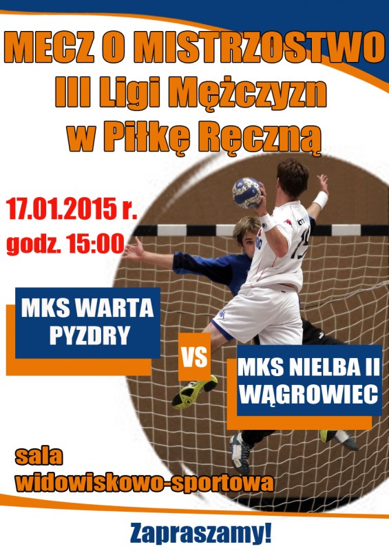 W sobotę o godz. 15.00, w sali widowiskowo-sportowej szczypiorniści Warty Pyzdry zmierzą się z MKS Nielba II Wągrowiec. Zapraszamy.