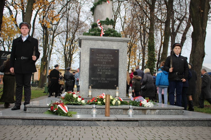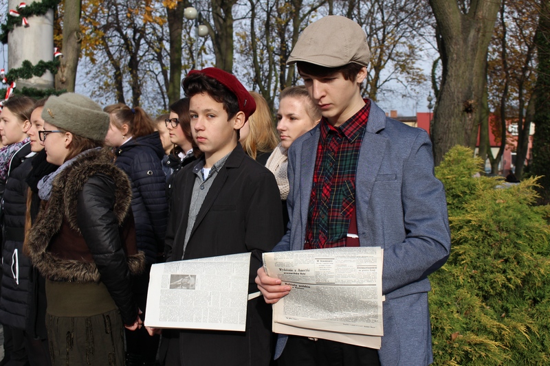 Uczestnicy obchodów śpiewali pieśni patriotyczne oraz wysłuchali inscenizacji wykonanej przez gimnazjalistów. W rolę narratora wcielił się dyrektor muzeum Michał Czerniak. Uroczystość swą obecnością zaszczycił Władysław Reymont, który powitał mieszkańców Pyzdr. W swoim płomiennym wystąpieniu wezwał wszystkich do kultywowania pamięci o bohaterach walczących o niepodległość naszej ojczyzny. W rolę noblisty wcielił się dyrektor Zespołu Szkolno-Przedszkolnego w Pyzdrach Roman Dreżewski.