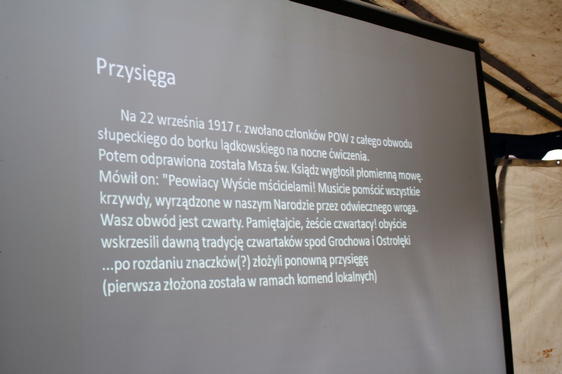 W ramach Pikniku Niepodległościowego zaproszono wszystkich zebranych do obejrzenia prezentacji multimedialnej pt. „POW w Pyzdrach” oraz do skosztowania gorącego barszczyku z franciszkańskimi rogalikami. W międzyczasie odbywała się gra miejska. Gimnazjaliści w zamian za prawidłowe odpowiedzi na zadawane pytania nagradzali mieszkańców i przybyłych gości biało-czerwonymi chorągiewkami i certyfikatami.