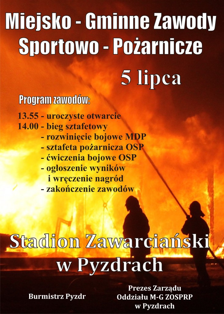 W najbliższą niedzielę, tj. 5 lipca na Stadionie Zawarciańskim odbędą się Miejsko-Gminne Zawody Sportowo-Pożarnicze. Zawody rozpoczną się o godz. 14:00 i wezmą w nich udział jednostki OSP z terenu naszej gminy. Szczegóły w załączeniu.