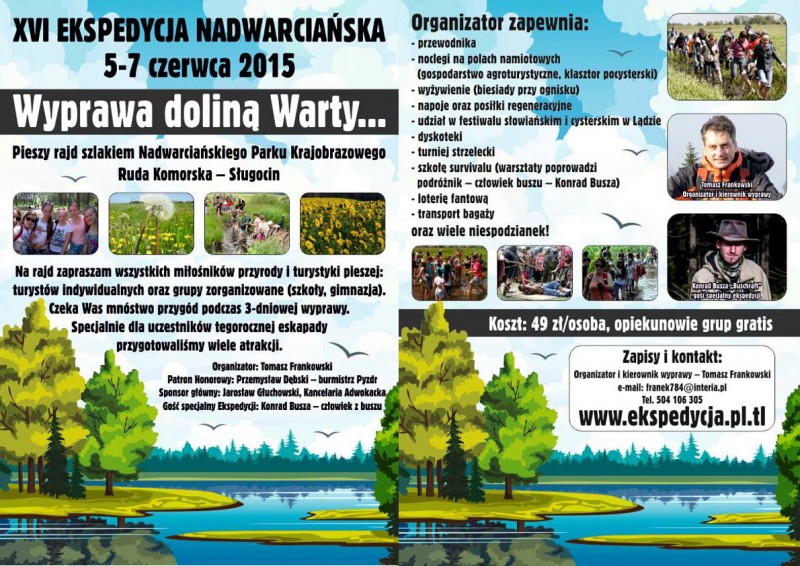 Trwają zapisy do XVI edycji Ekspedycji Nadwarciańskiej. Rajd pieszy odbędzie się w dniach od 5-7 czerwca. Zapraszamy miłośników turystyki do wzięcia udziału w trzydniowym rajdzie po nadwarciańskich bezdrożach.