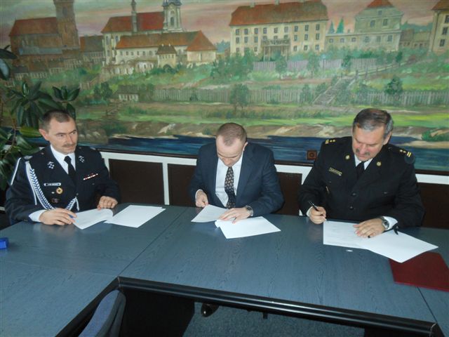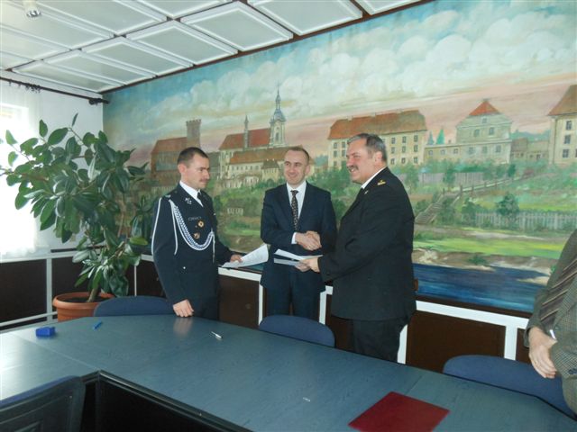 Porozumienie podpisane zostało przez Burmistrza Pyzdr Przemysława Dębskiego, Komendanta Powiatowego Państwowej Straży Pożarnej Roberta Wojtkowiaka oraz Prezesa Ochotniczej Straży Pożarnej Lisewo Jacka Urbaniaka.