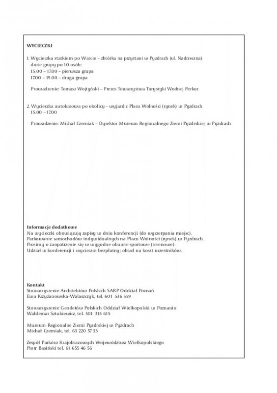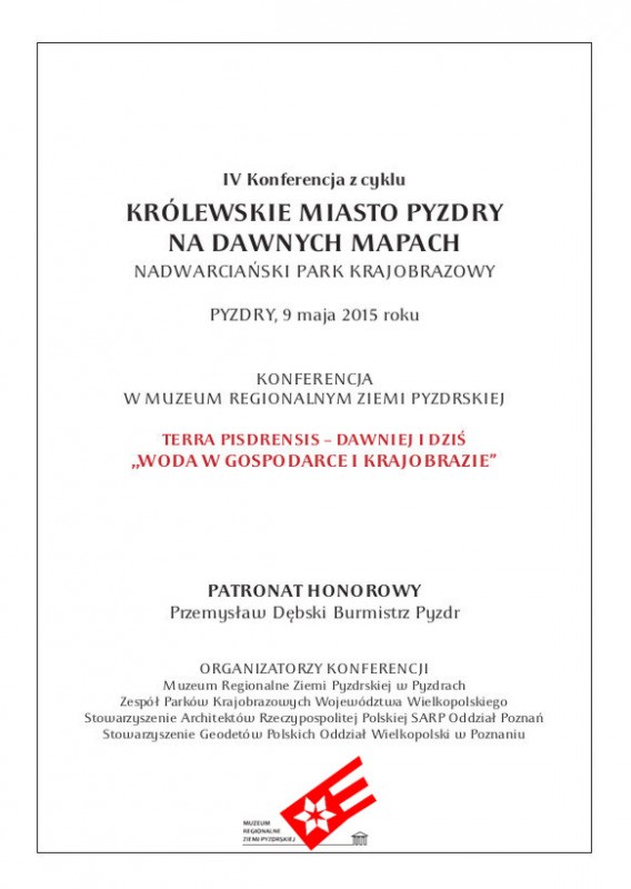 Konferencja pod patronatem Burmistrza Pyzdr organizowana jest przez Muzeum Regionalne Ziemi Pyzdrskiej, Zespół Parków Krajobrazowych Województwa Wielkopolskiego, Stowarzyszenie Architektów Rzeczypospolitej Polskiej SARP Oddział Poznań, Stowarzyszenei Geodetów Polskich Oddział Wielkopolski w Poznaniu.