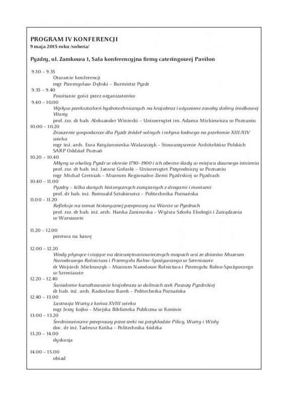 Obrady konferencji są otwarte dla wszystkich. Zapraszamy wszystkich chętnych do udziału w konferencji, w sali konferencyjnej firmy cateringowej "Pavilon" (Jakub Fludra) przy ul. Zamkowej w Pyzdrach.