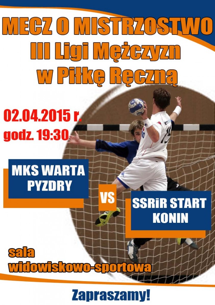 Mecz o Mistrzostwo III Ligi Mężczyzn w Piłkę Ręczną odbędzie się 2 kwietnia (dziś) o godz. 19.30 na sali widowiskowo - sportowej. Na boisku spotkają się MKS Warta Pyzdry i SSRiR Konin.