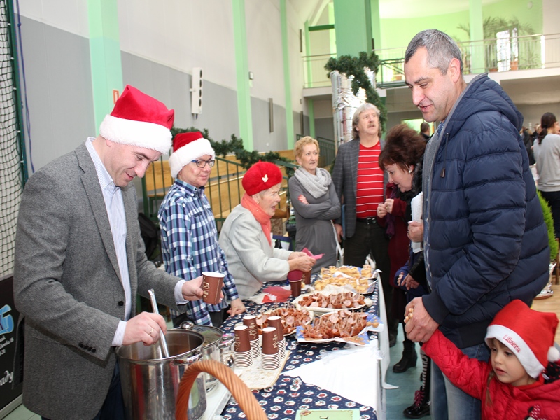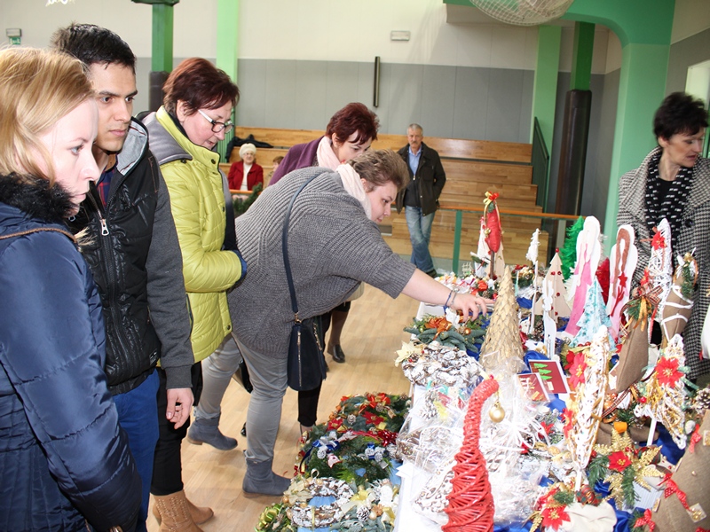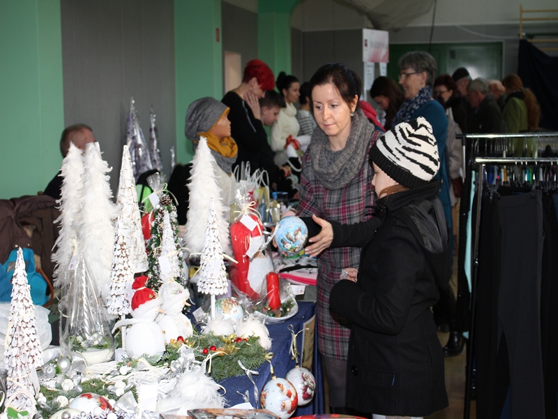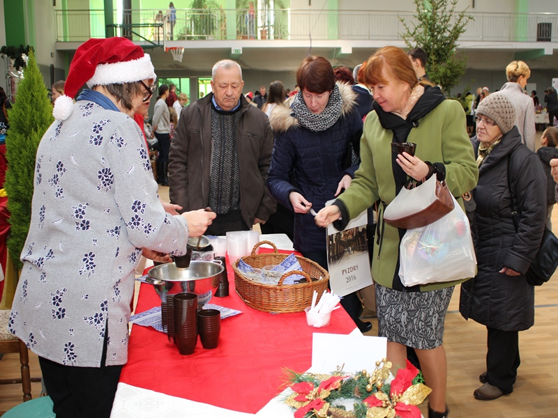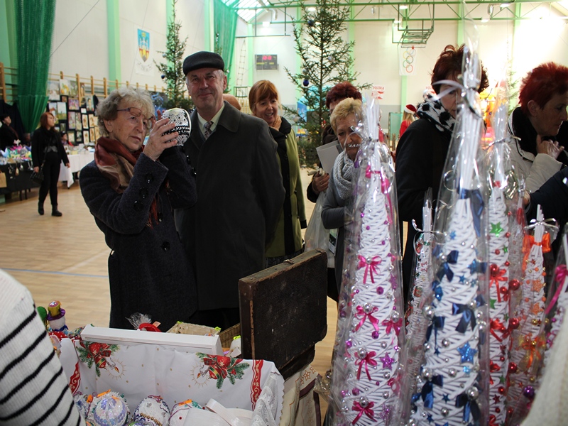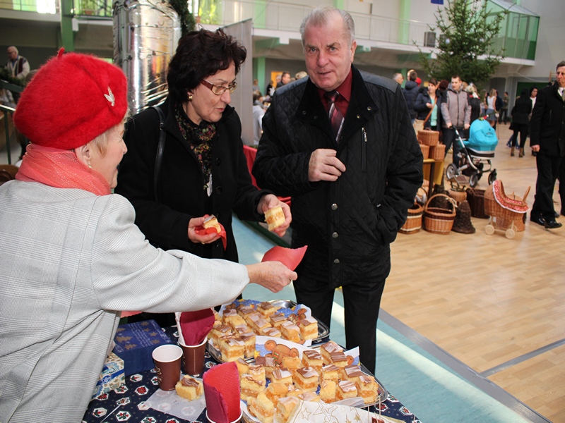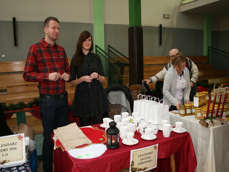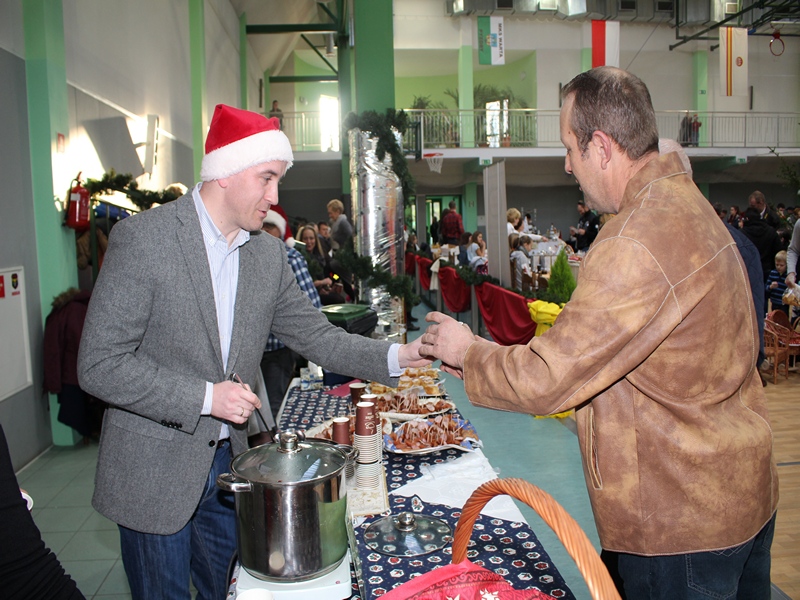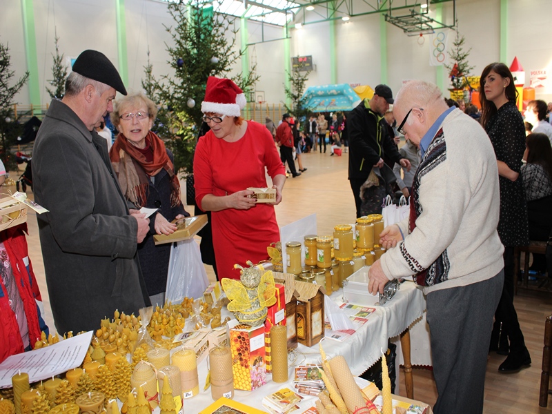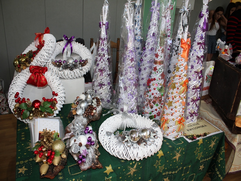 Świąteczna impreza odbyła się w sali widowiskowo-sportowej. Przestronny obiekt spełnił nasze oczekiwania. W tym samym miejscu i w tym samym czasie przeprowadziliśmy zarówno kiermasz handlowy, jak i wesołą zabawę dla najmłodszych. Dorośli mogli wybierać prezenty dla najbliższych i szukać prostych dekoracji, by ich dom stał się przytulny i radosny na święta. Pomysłów i inspiracji było mnóstwo. Od papierowych choinek, artystycznych bombek czy gipsowych aniołków, po kubki ręcznie malowane, cuda z pszczelej pasieki, ubrania i biżuterię. Słowem – dla każdego coś fajnego. Nie sposób wszystkiego wymienić. Wystawcy zaoferowali przedmioty z duszą. Niektórzy dostali się do naszych serc przez żołądek serwując swoje kulinarne specjały. A jeszcze inni nakłonili nas do okazywania serca i wsparcia potrzebujących. Chyba wszyscy poczuliśmy magię nadchodzących świąt, podkreśloną muzycznym akcentem orkiestry i uczestniczek zajęć wokalnych.