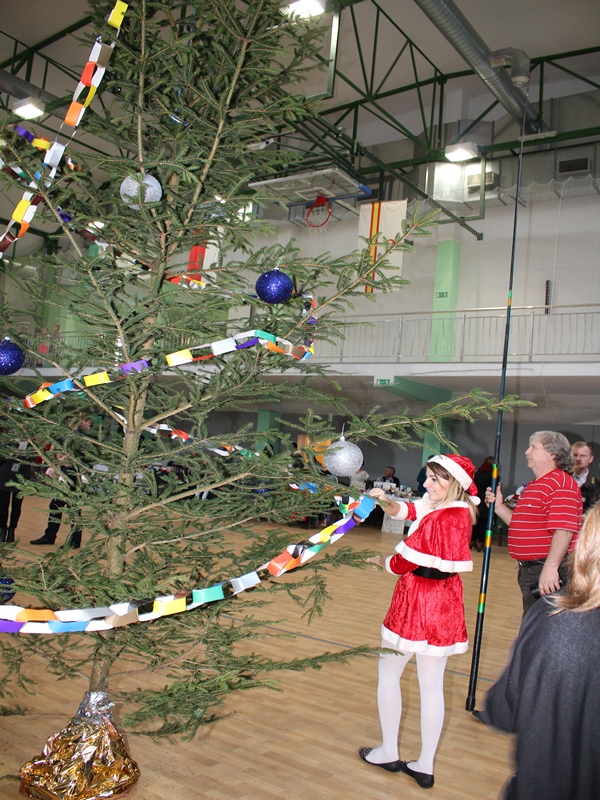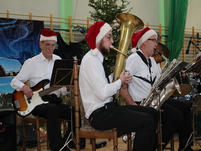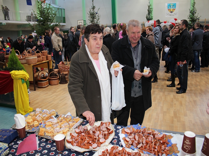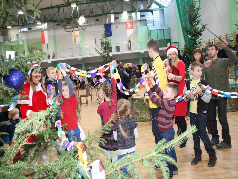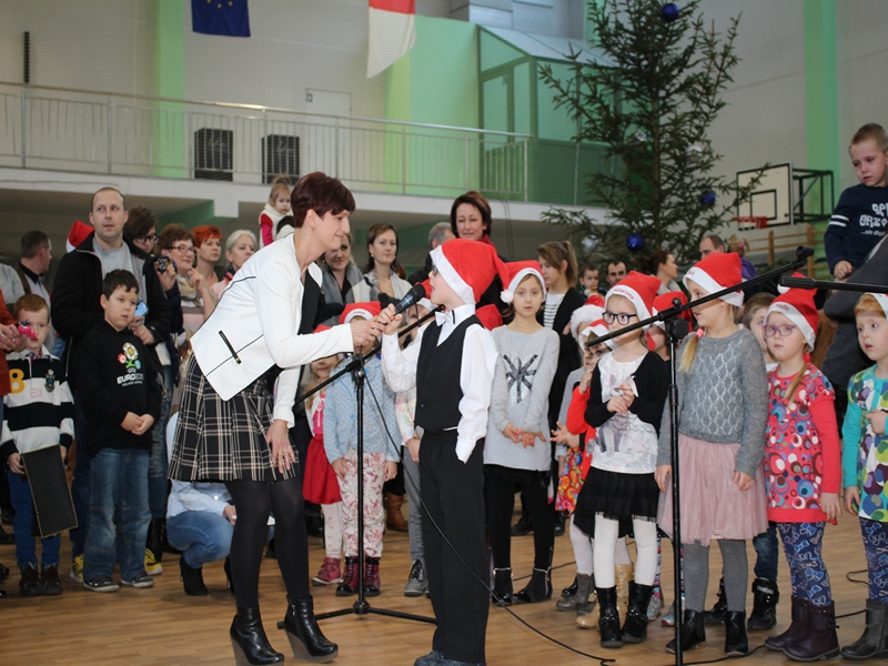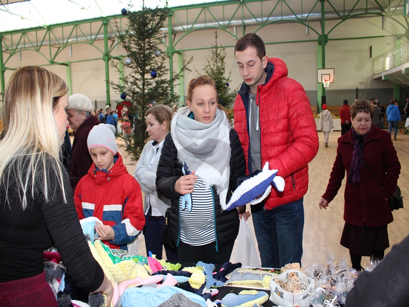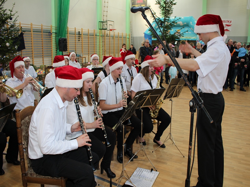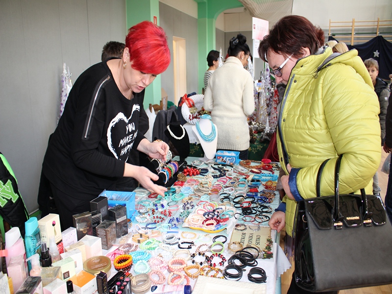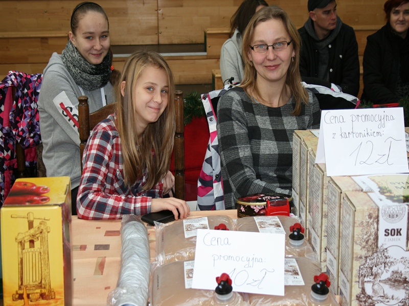 Świąteczna impreza odbyła się w sali widowiskowo-sportowej. Przestronny obiekt spełnił nasze oczekiwania. W tym samym miejscu i w tym samym czasie przeprowadziliśmy zarówno kiermasz handlowy, jak i wesołą zabawę dla najmłodszych. Dorośli mogli wybierać prezenty dla najbliższych i szukać prostych dekoracji, by ich dom stał się przytulny i radosny na święta. Pomysłów i inspiracji było mnóstwo. Od papierowych choinek, artystycznych bombek czy gipsowych aniołków, po kubki ręcznie malowane, cuda z pszczelej pasieki, ubrania i biżuterię. Słowem – dla każdego coś fajnego. Nie sposób wszystkiego wymienić. Wystawcy zaoferowali przedmioty z duszą. Niektórzy dostali się do naszych serc przez żołądek serwując swoje kulinarne specjały. A jeszcze inni nakłonili nas do okazywania serca i wsparcia potrzebujących. Chyba wszyscy poczuliśmy magię nadchodzących świąt, podkreśloną muzycznym akcentem orkiestry i uczestniczek zajęć wokalnych.