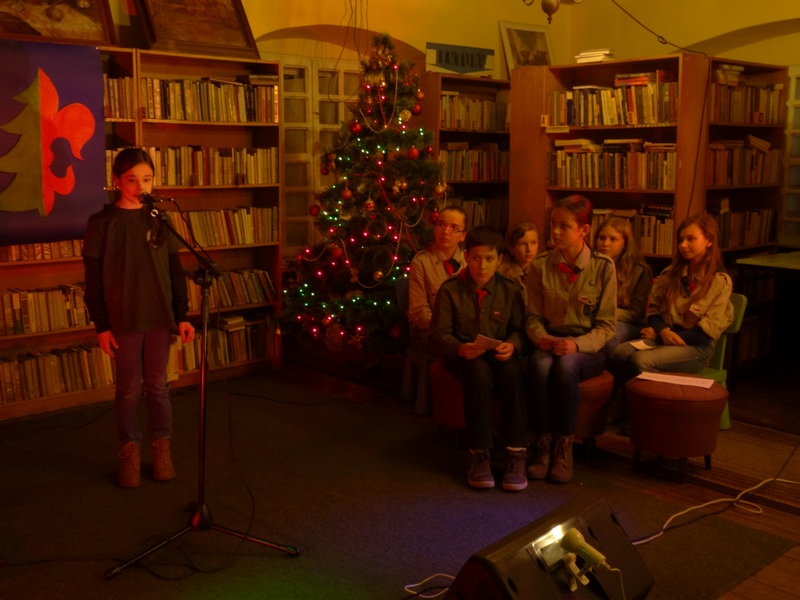 Drużynowy Zbyszek szybko wprowadził nas w świąteczny nastrój opowiadając o tradycjach świątecznych na Podhalu po czym usłyszeliśmy najpiękniejsze polskie kolędy i góralskie pastorałki, które są nieodłącznym elementem wzbogacającym przeżywanie tego niezwykłego czasu.