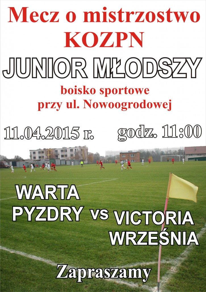 W sobotę 11 kwietnia o godz. 11.00 na boisku sportowym przy ul. Nowoogrodowej spotkają się piłkarze kategorii Junior Młodszy: MKS Warta Pyzdry i Victoria Września.