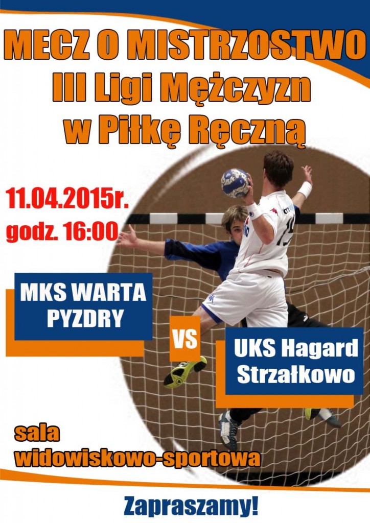 Tego samego dnia o godz. 16.00 odbędzie się mecz piłki ręcznej. Na sali widowiskowo - sportowej MKS Warta Pyzdry podejmie UKS Hagard Strzałkowo.