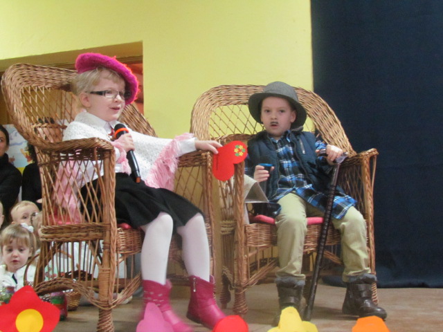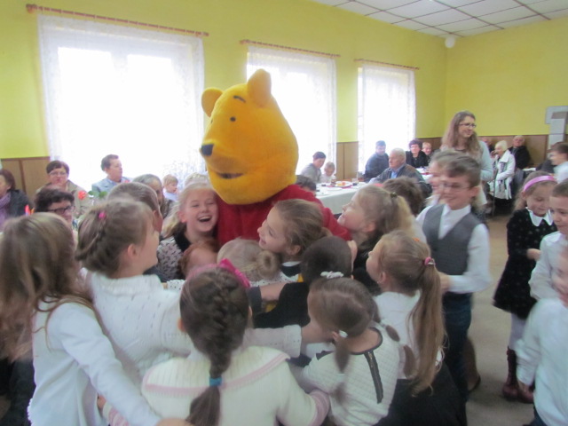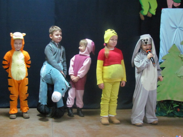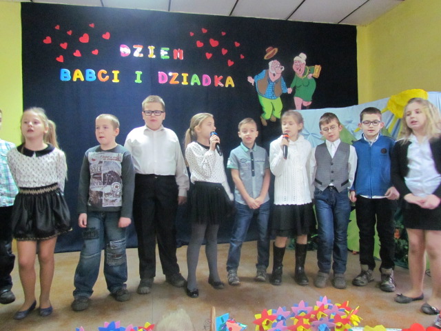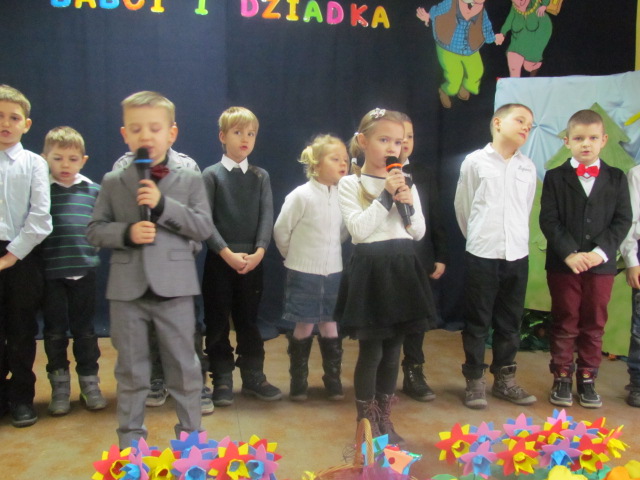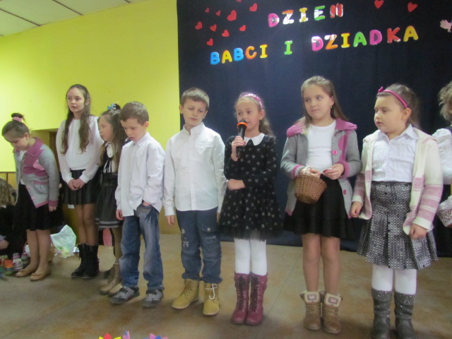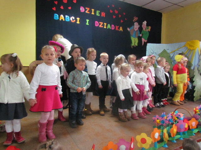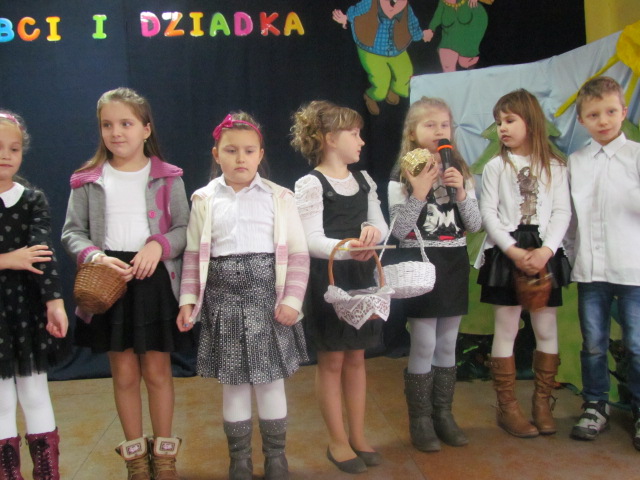 Ten wyjątkowy dzień obchodziliśmy nieco inaczej niż w poprzednich latach, a to z racji udziału w ogólnopolskiej zabawie Disneya dla przedszkoli „Kubusiowe piosenki”. Z tej okazji przedszkolacy zaprezentowali program artystyczny pt. „Kubusiowy Dzień Babci i Dziadka”. Przygotowane specjalnie na tą uroczystość przedstawienie, kolorowe dekoracje oraz kostiumy, zabrały wszystkich obecnych do Stumilowego Lasu, gdzie oprócz znanych postaci z bajki „Kubuś Puchatek” mogliśmy zobaczyć babcie i dziadka, którzy zabłądzili w lesie szukając miejsca wskazanego w zaproszeniu. Inspirację do scenariusza imprezy stanowiły piosenki znane wielbicielom Puchatka. Babcie i dziadkowie nie kryli zadowolenia widząc popisy swoich zdolnych wnucząt. Także dzieci z klas I-III recytowały wierszyki, tańczyły, śpiewały piosenki oraz podobnie, jak maluchy z przedszkola wręczyły pamiątkowe laurki i własnoręcznie wykonane prezenty.
