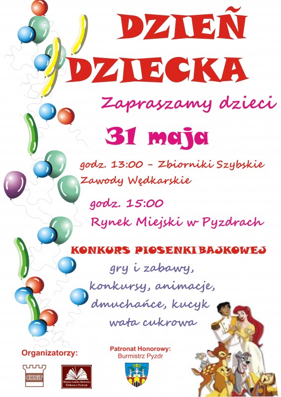Serdecznie zapraszamy wszystkich na Dzień Dziecka. Wspólna zabawa będzie miała miejsce 31 maja.