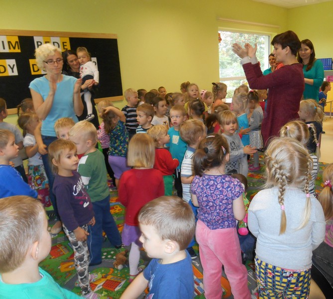 Dzieci doskonale orientowały się, gdzie pracuje zaproszony gość, ponieważ już niejednokrotnie miały okazję się z nim zetknąć. Teraz bywa w przedszkolu codziennie, a pomimo to z chęcią przyjęła nasze zaproszenie. Dyskusja z dziećmi na pewno nie była łatwym zadaniem, ale Pani Sekretarz świetnie sobie z nim poradziła. Przy okazji pobytu w przedszkolu mogła osobiście poznać sympatie koleżeńskie swojej córeczki oraz uczestniczyć w zabawach integracyjnych prowadzonych przez ulubioną ciocię Alicji - Panią Karolinę Adamek. Na zakończenie spotkania Pani Sekretarz przekazała dzieciom edukacyjne gry dydaktyczne, a na pamiątkę otrzymała własnoręcznie wykonane przez dzieci „drzewko szczęścia”, które z pewnością zagwarantuje jej dalsze sukcesy zawodowe i osobiste.