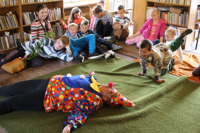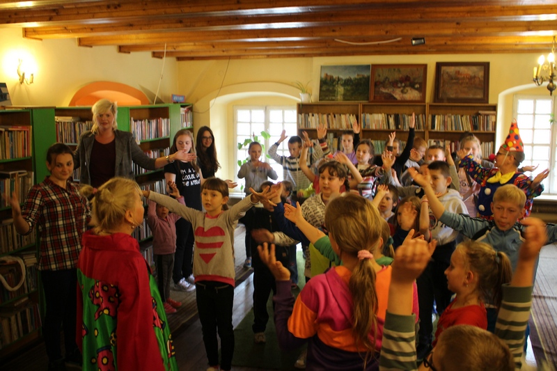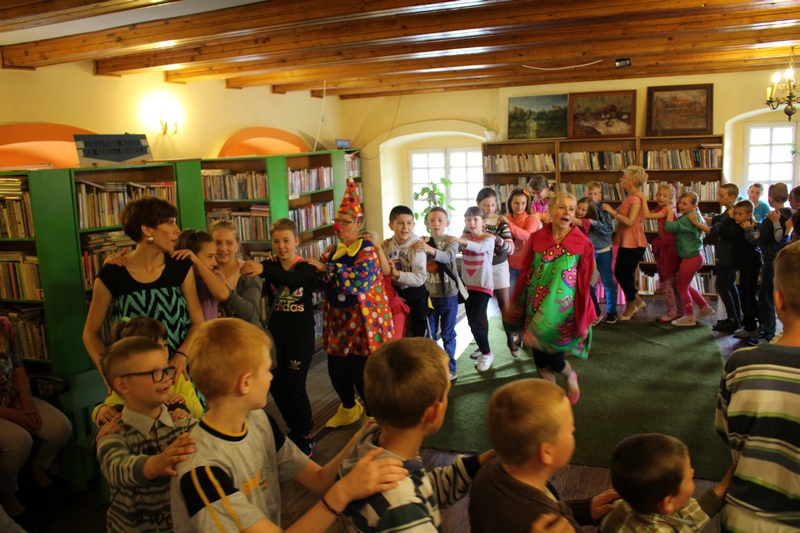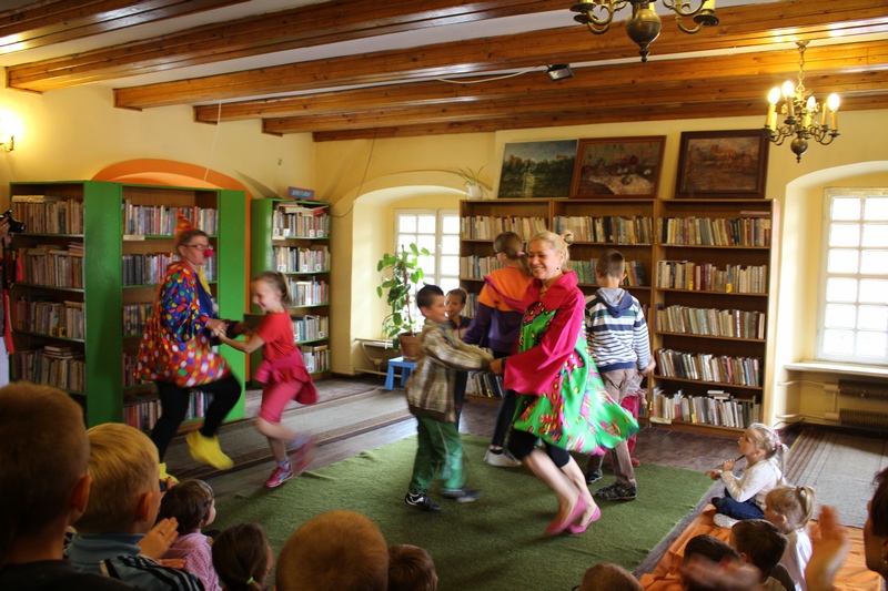 Na dobry początek miała miejsce inscenizacja „Rzepki” Juliana Tuwima z udziałem dzieci. Mimo pełnej spontaniczności i jakiekolwiek przygotowania dzieci znakomicie wcieliły się w rolę. Poza tym „Tańcowały dwa Michały”, zawitało „Ptasie radio” i „Lokomotywa” oraz wiele innych ciekawych bajek i bajeczek. Panie prowadzące zaprosiły wszystkich do wspólnej zabawy tańcząc i śpiewając. Mimo zróżnicowanej grupy wiekowej, od przedszkolaków po dzieci kończące szkołę podstawową, wszyscy świetnie się bawili. Serdecznie dziękujemy za wspaniałą zabawę, za uśmiech i zapraszamy ponownie do biblioteki!