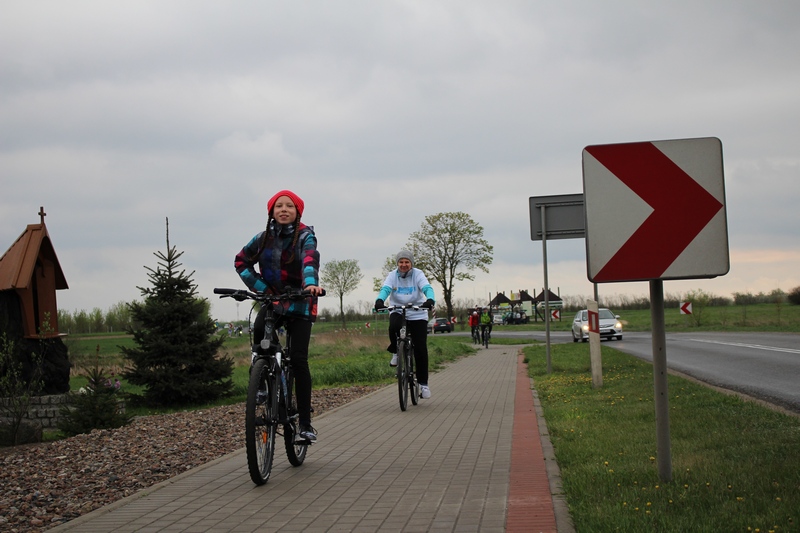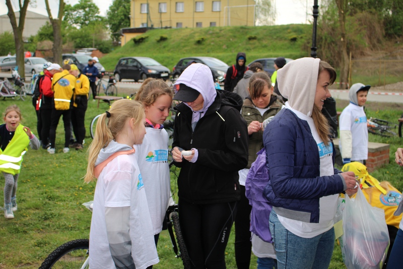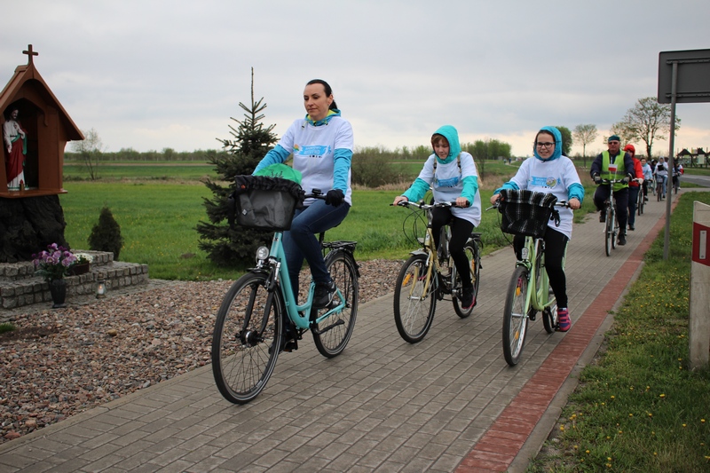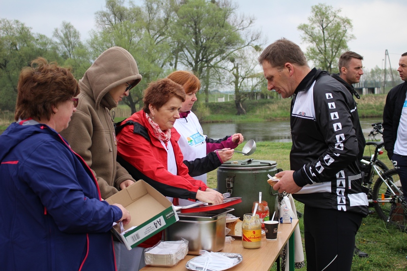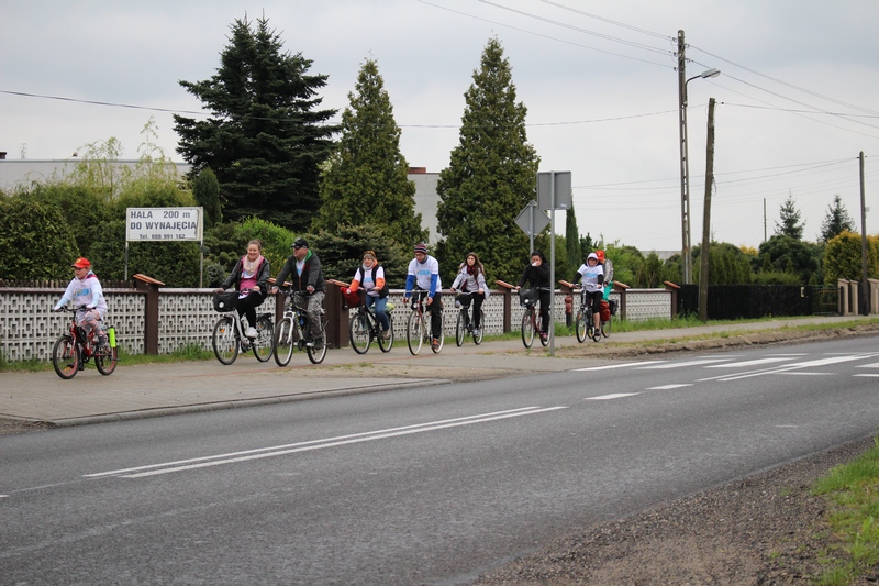 148 osób piątkowy poranek postanowiło spędzić aktywnie. Na starcie otrzymały one koszulki, przypinki i mapę z trasą wraz z kartą zadań. Punktualnie o godz. 10:00 pod okiem pyzdrskiej policji wyruszyli z boiska szkolnego. Uczestnicy rowerowej eskapady rozpoczęli swoje zmagania ulicami Pyzdr. Dalej ścieżką rowerową do Borzykowa przez Gorazdowo – Borkowo – Pietrzyków – Rataje – Dłusk, aż na teren Przystani „Pyzdry”, gdzie mogli posilić się kiełbaską z grilla. Każdy brał udział w losowaniu nagród. Szczęśliwym posiadaczem roweru górskiego została Elżbieta Ratajczyk.