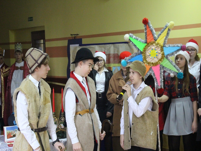 Pyzdrskie gimnazjum przedstawiło Jasełka XXI wieku. Reporter, zapracowani biznesmeni, nastolatki, babcie rozmawiające na przystanku to tylko niektóre przedstawione przez młodzież postacie. Wszystkie zabiegane i nie raz zapominające o tradycji i świątecznej atmosferze. Tak jak co roku inscenizacja przeplatała się z dźwiękami kolęd wykonywanych na pianinie, gitarze, trąbce czy też śpiewane przez chór i solistki.