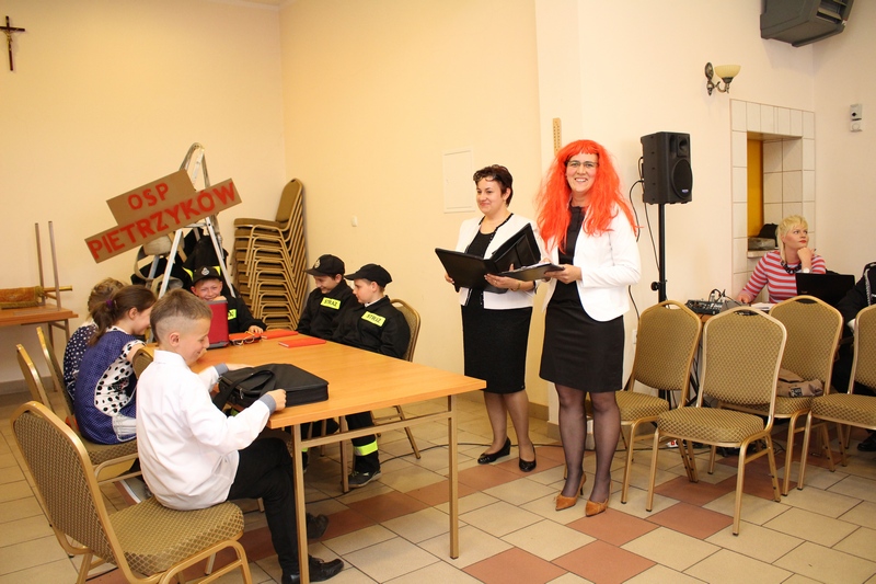 Dalsza część programu rozgrywała się w budynku remizy. Dzieci ze Szkoły Podstawowej z Pietrzykowa przygotowały specjalnie na tę okazję program artystyczny. Były tańce, śpiewy i wierszyki, ale najlepszym okazał się kabaret, który odzwierciedlał życie i spotkania miejscowych strażaków. Zawitała nawet kontrola z Urzędu Skarbowego. Wojciech Tomaszewski dziękując za tak świetnie przygotowaną inscenizację wręczył na ręce opiekunów kwiaty. Obchody Dnia Strażaka zakończyły się poczęstunkiem.