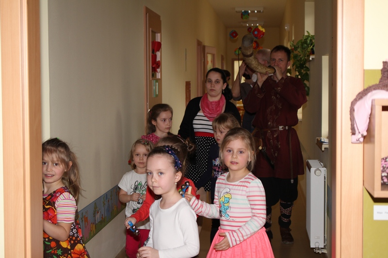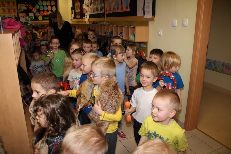 Wszyscy wzięli udział w dawnym święcie witania wiosny, w korowodzie przebierańców – muzykantów. Dzieciaki były zachwycone pomysłem robienia wielkiego hałasu w całym przedszkolu.