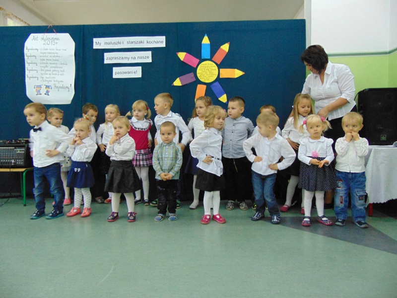 Podczas uroczystości dzieci zaprezentowały przed zgromadzoną publicznością swoje umiejętności: pięknie zaśpiewały piosenki, recytowały wiersze i tańczyły. W dalszej części dzieci złożyły uroczyste ślubowanie. Do złożenia przyrzeczeń zostali zaproszeni także rodzice. Przyrzekali m.in. czytać dzieciom ksiażeczki, opowiadać bajeczki, codziennie je przytulać i z całej siły kochać.