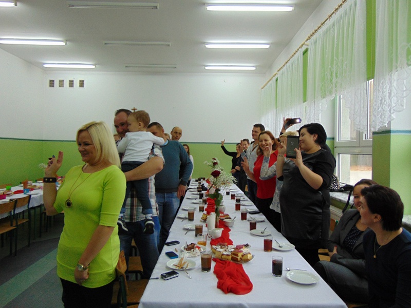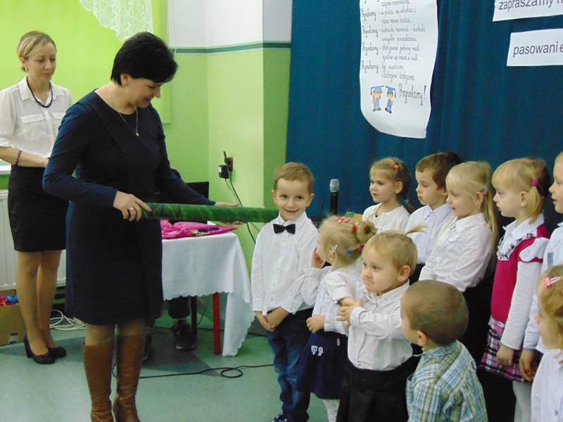 Po złożeniu przysięgi Pani Dyrektor dokonała uroczystego pasowania na przedszkolaka i zerówkowicza. Na pamiątkę każde dziecko otrzymało dyplom oznaczający przynależność do grona przedszkolaków i zerówkowiczów. Dodatkowo otrzymali upominki od Rady Rodziców oraz Urzędu Gminy. Po części artystycznej wszyscy goście zostali zaproszeni na słodki poczęstunek.