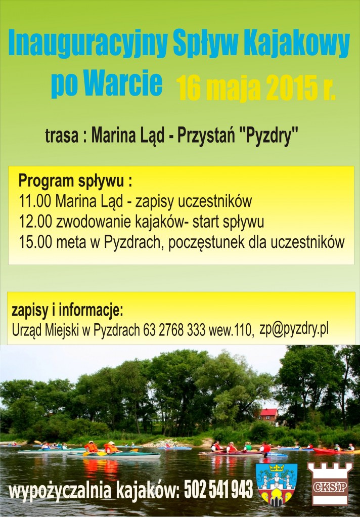 Serdecznie zapraszamy wszystkich miłośników sportów wodnych na spływ kajakowy, który odbędzie się w sobotę 16.05.2015 r. o godz. 11:00.