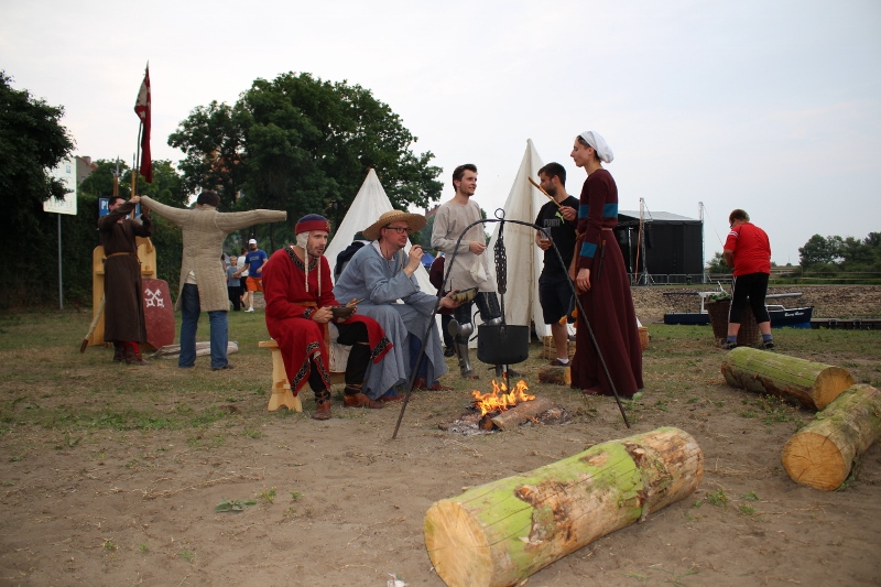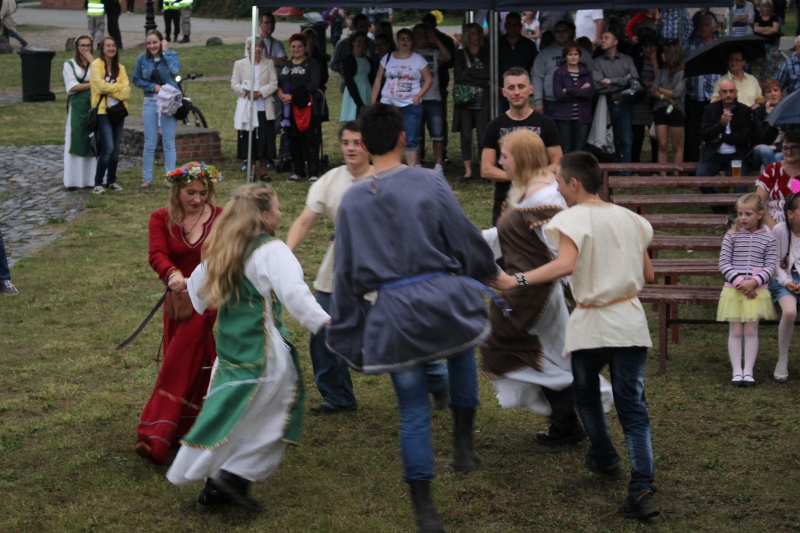 Tegoroczna Noc Świętojańska rozpoczęła się występem wokalnym pyzdrskiej młodzieży. Nie zabrakło też atrakcji dla miłośników historii. Wielkopolska Grupa Rycerska zaprezentowała pokaz dawnych strojów i ruszyła do walki. Publiczność mogła sprawdzić swoje umiejętności w strzelaniu z łuku, rąbaniu toporem główek kapusty, czy bezpiecznej walce z uzbrojonym przeciwnikiem. Dużym zainteresowaniem cieszyły się również warsztaty ceramiczne. Ich uczestnicy mogli samodzielnie wykonać naczynia z gliny na tradycyjnym kole garncarskim. Warsztaty Terapii Zajęciowej w Rudzie Komorskiej i Środowiskowy Dom Samopomocy w Pietrzykowie wystawiły swoje rękodzieła. Monika Sitko prezentowała swoje cudeńka. Można było skosztować żywności ekologicznej Janiny Saccke, jak również odwiedzić stoisko z ziołami i sakiewkami. Dla każdego coś miłego bądź smacznego. Karczma Dłusk przygotowała potrawy z lokalnych produktów: pyry z gzikiem, chleb ze smalcem i z ogórkiem, chleb z miodem, zalewajkę, gofry i kiełbasę.