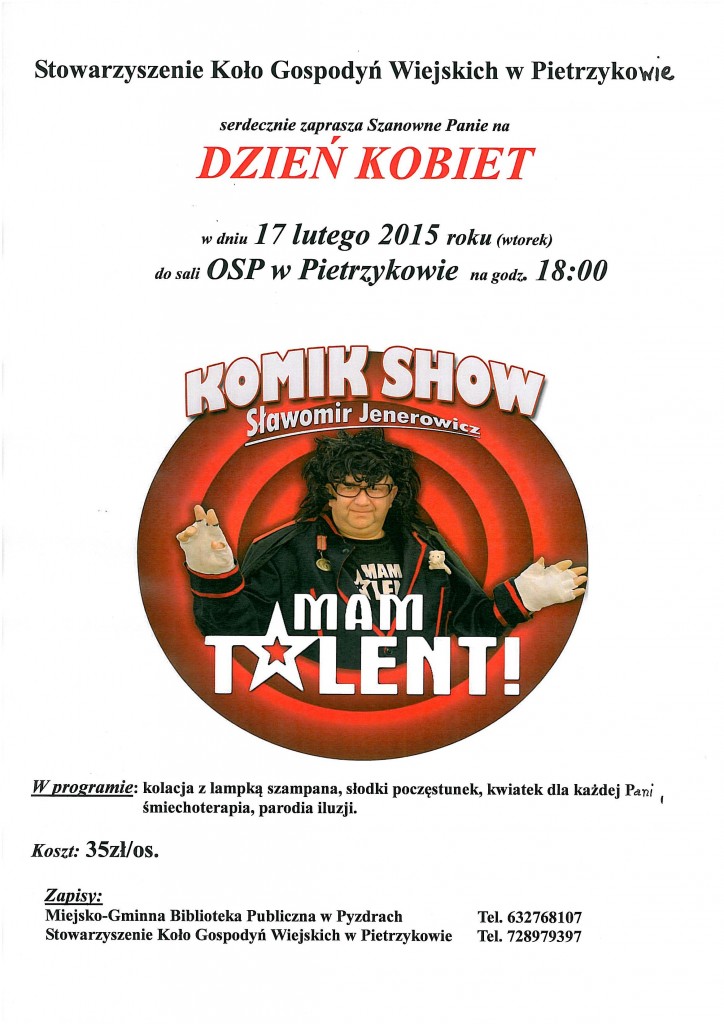 W związku ze zbliżającym się Dniem Kobiet, Stowarzyszenie Koło Gospodyń Wiejskich w Pietrzykowie zaprasza chętne panie 17 lutego do sali OSP w Pietrzykowie.