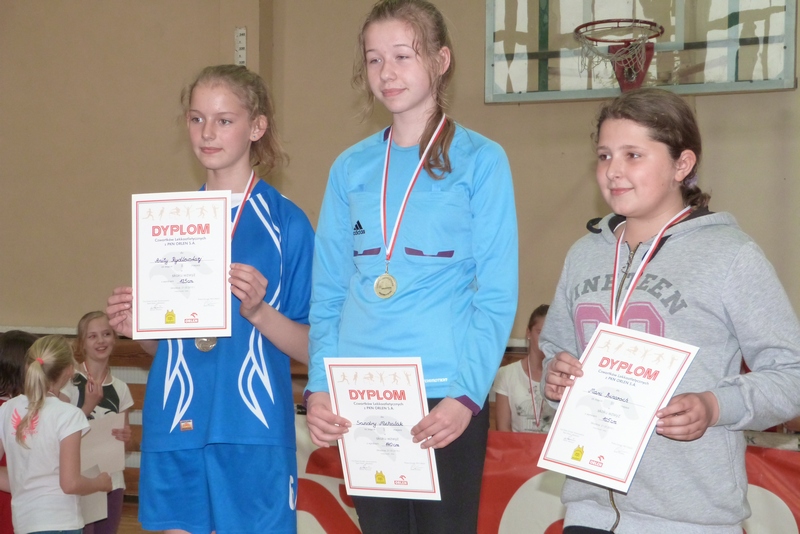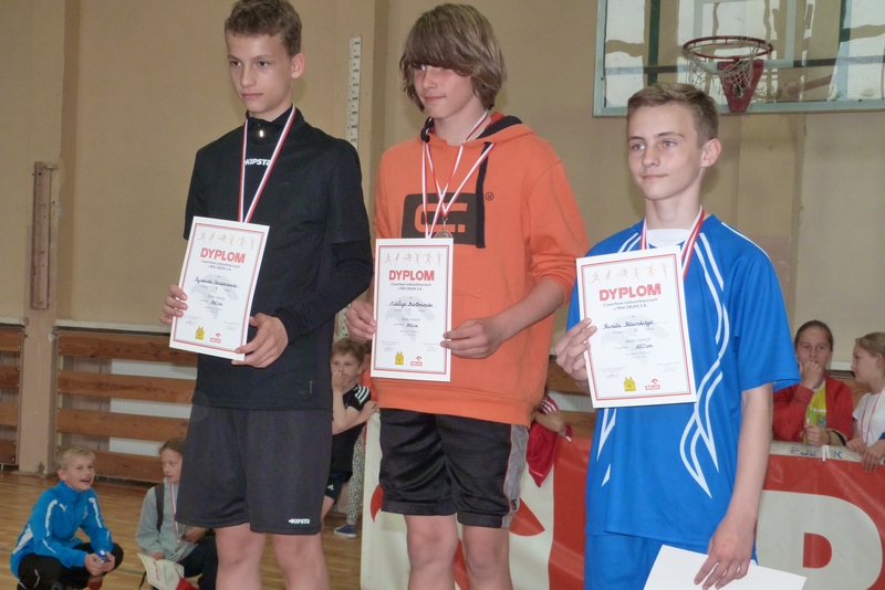 Po zaciętych pojedynkach w poszczególnych konkurencjach uczniowie zdobyli sześć medali: złoto Samanta Wajnert klasa V w skoku wzwyż, Nikolas Klainschmidt klasa V w biegu na 300m, srebro Anita Rydlewska klasa VI w skoku wzwyż, brąz Kamila Tabert klasa V oraz Kamil Pilarski klasa VI w skoku wzwyż. Kamil Pilarski zdobył również brąz w biegu na dystansie 300m. Na uwagę zasługuje fakt, że w finale mogą startować uczniowie, którzy w serii jesiennej i wiosennej rywalizowali w minimum pięciu czwartkach. Dziękujemy uczniom za godne reprezentowanie szkoły i gminy.