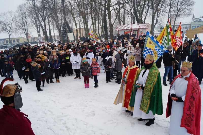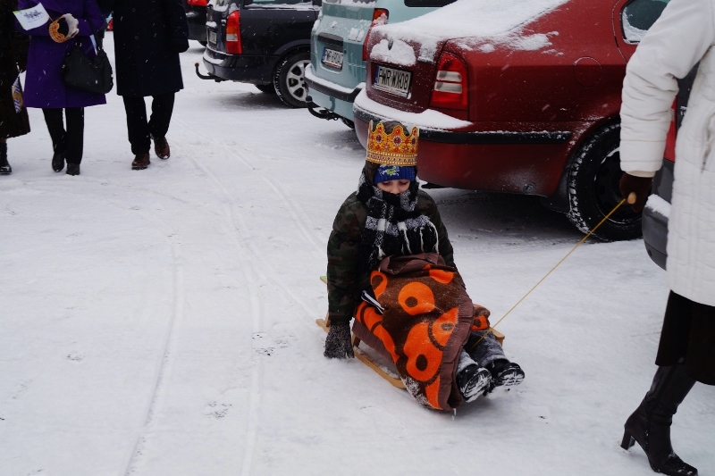 Mędrcy ze Wschodu tuż przed godz. 12:00 przybyli do Fary, by wziąć udział w Mszy Św. Zaraz po niej w towarzystwie zgromadzonych wiernych przemaszerowali ulicami miasta. Śpiewając kolędy odwiedzili pałac Heroda, przyglądali się walce aniołów z diabłami oraz przeszli przez bramy nieba aby dotrzeć do Świętej Rodziny. Mimo śnieżnej aury w orszaku wzięło udział wielu mieszkańców. Na każdego czekał specjalnie przygotowany pakiet gadżetów oraz gorąca herbata i ciasto.