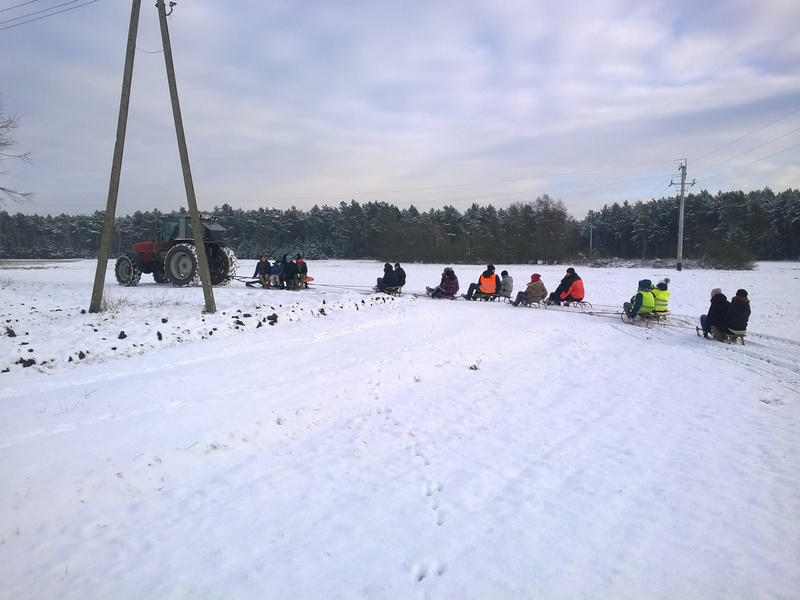 Lekki mróz i gruba warstwa śniegu stworzyły dogodne warunku do organizacji kuligu. Sołtysi – Beata Maciejewska i Piotr Pilarski postanowili to wykorzystać. Zaprosili mieszkańców kilku wiosek. Ci, wyposażeni w dobre humory, ciepłe ubrania i sanki stawili się na zajeździe w Kolonii Ciemierów. Zostali zaprzęgnięci do czterech ciągników i terenówki. Jedni wybrali delikatne saneczkowanie, a inni – takie trochę ekstremalne. Sanie sunęły przez Kolonię Lisewo, Dolne Grądy, Baraniec, Tłoczyznę z metą w Kruszynach. Dla wszystkich frajda była niesamowita. To nic, że trochę przemarzli, albo wypadli z zaprzęgu. Wszak to taki urok zimowego szaleństwa. Zabraknąć nie mogło ogniska i pieczonych kiełbasek. Marzena Bergier przygotowała grochówkę i gorącą herbatę, zaś Jarosław Majdecki zapewnił oprawę muzyczną.