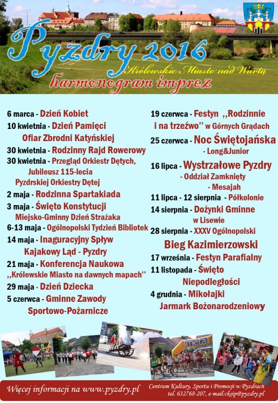W ostanią niedzielę sierpnia, juz po raz 35. na pyzdrskim rynku zostanie zorganizowany Ogólnopolski Bieg Kazimierzowski. W tym roku, po raz pierwszy w ramach Grand Prix Powiatu Wrzesińskiego Biegów Ulicznych na 10 km.