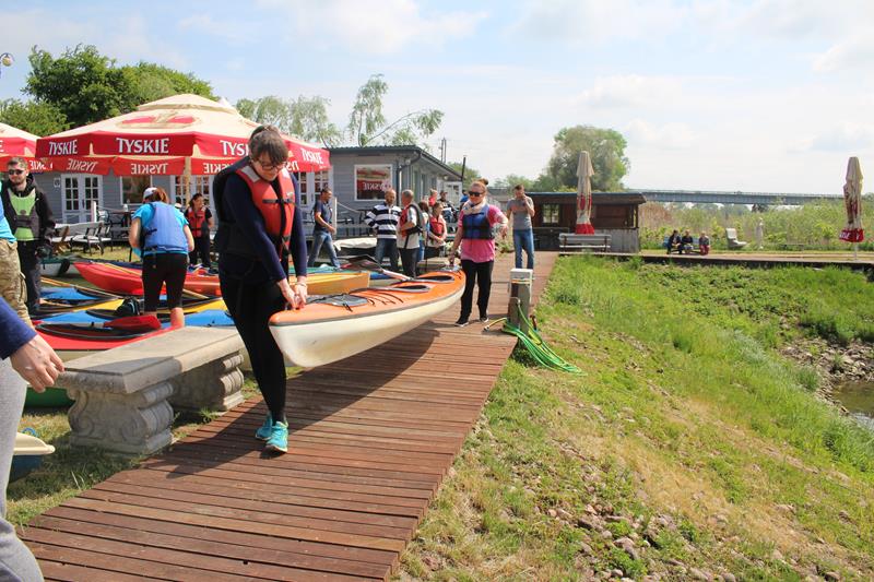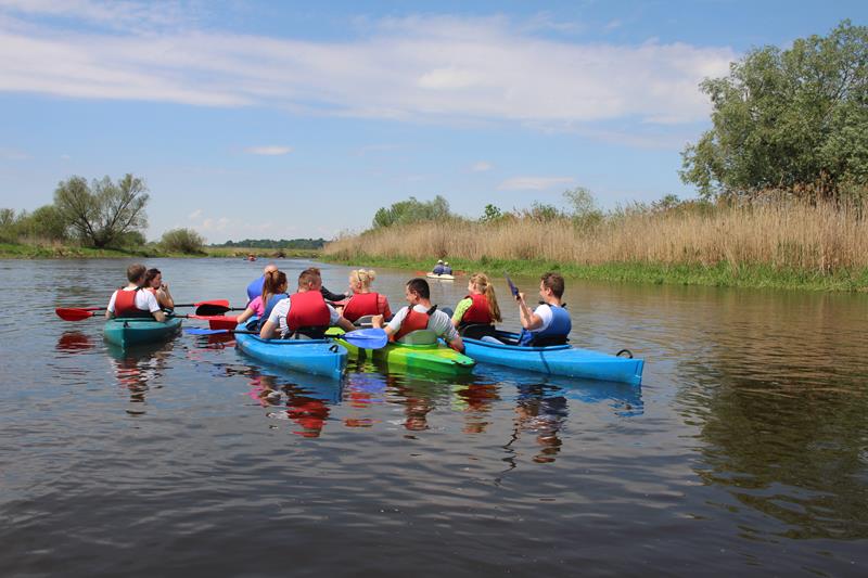 W sobotę rano rowerzyści wyruszyli z Białobrzegu na trasę Zbyszka Szczypkowskiego po powiecie wrzesińskim. Z Konina Nadwarciańskim Szlakiem Rowerowym dojechało trzech cyklistów. Z Rumina wypłynęli na Wartę kajakarze. Kierownik spływu Marek Walerczyk bezpiecznie poprowadził kajaki 40-kilometrowym odcinkiem Wielkiej Pętli Wielkopolski do starorzecza Madałowego. Z Konina autokarem dojechali piechurzy z Markiem Chlebickim i zdobyli grodzisko Modlica sprzed 2500 lat. Spora grupa odwiedziła Muzeum Ziemi Pyzdrskiej i mural obrazujący historię miasta. Wszyscy spotkali się na rynku w Pyzdrach, aby obejrzeć inscenizację zdobywania bramy miasta. Jednym z rycerzy był Ryszard Plato z miasta Koło, członek naszego Klubu.