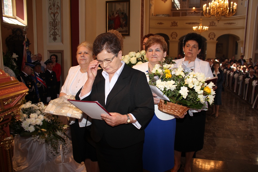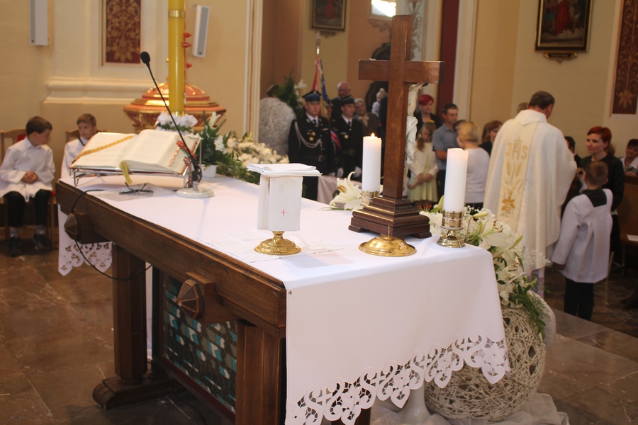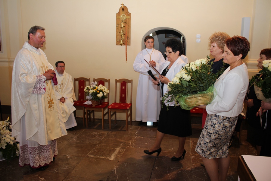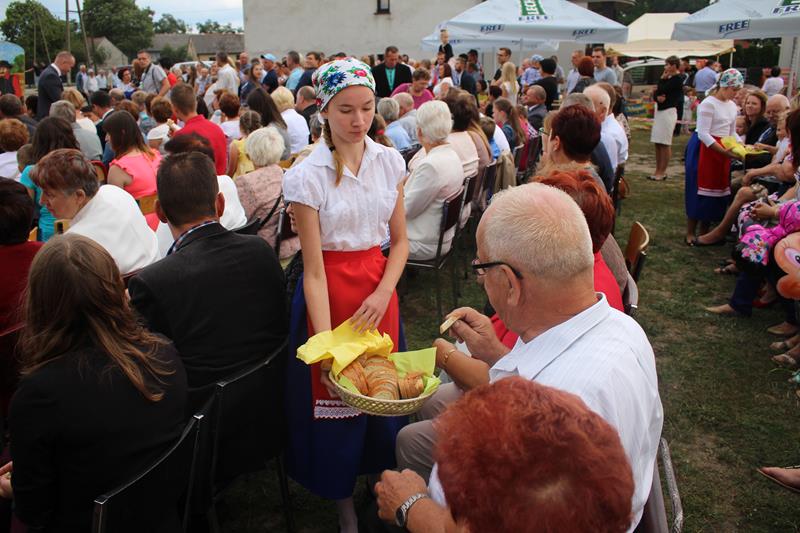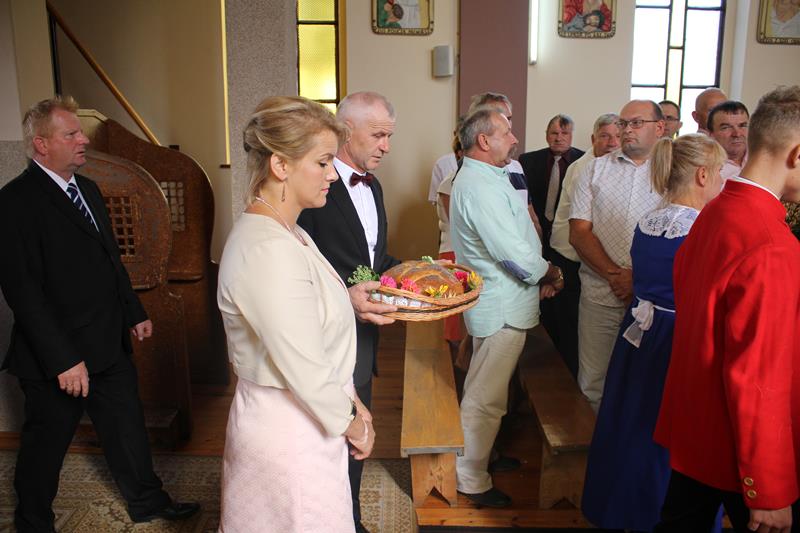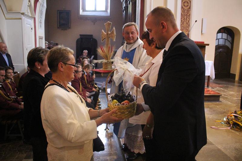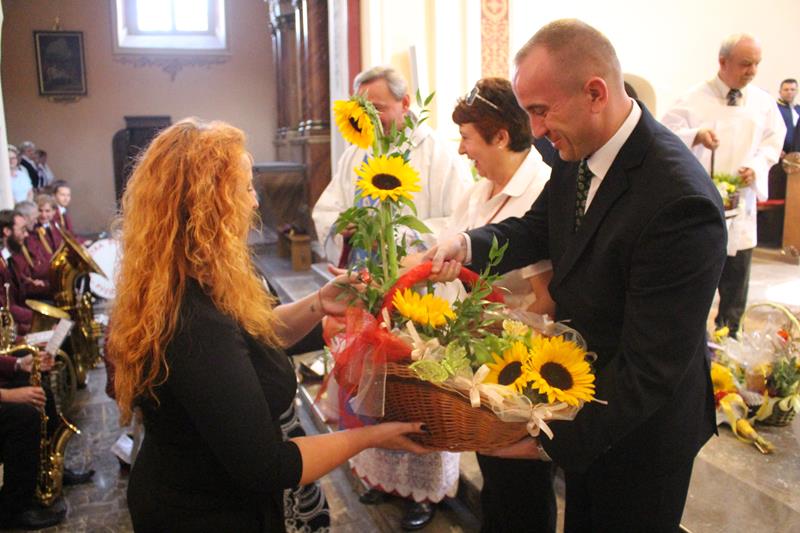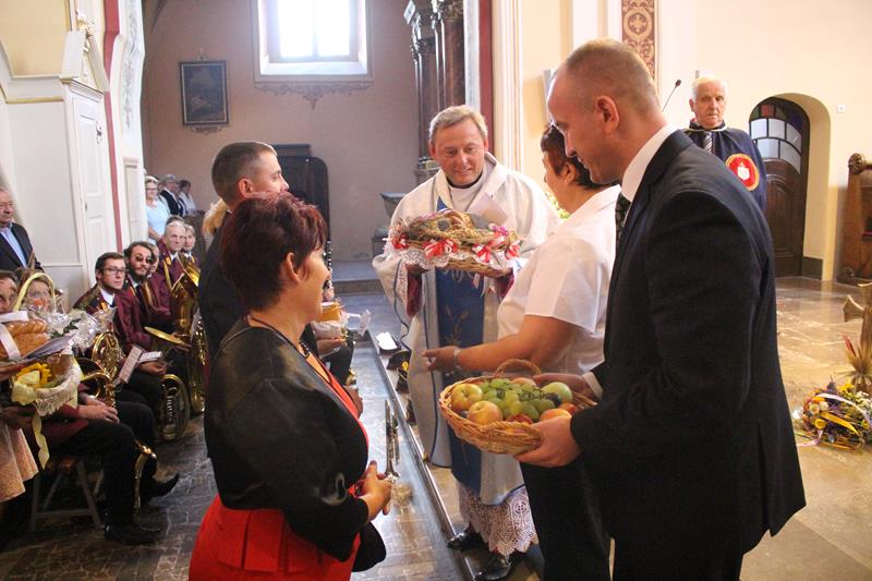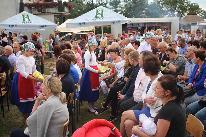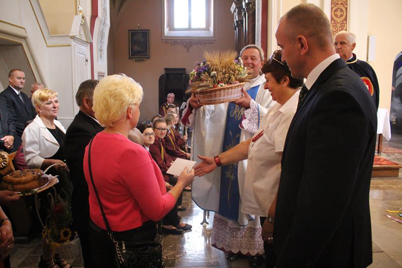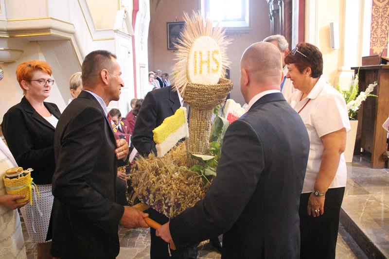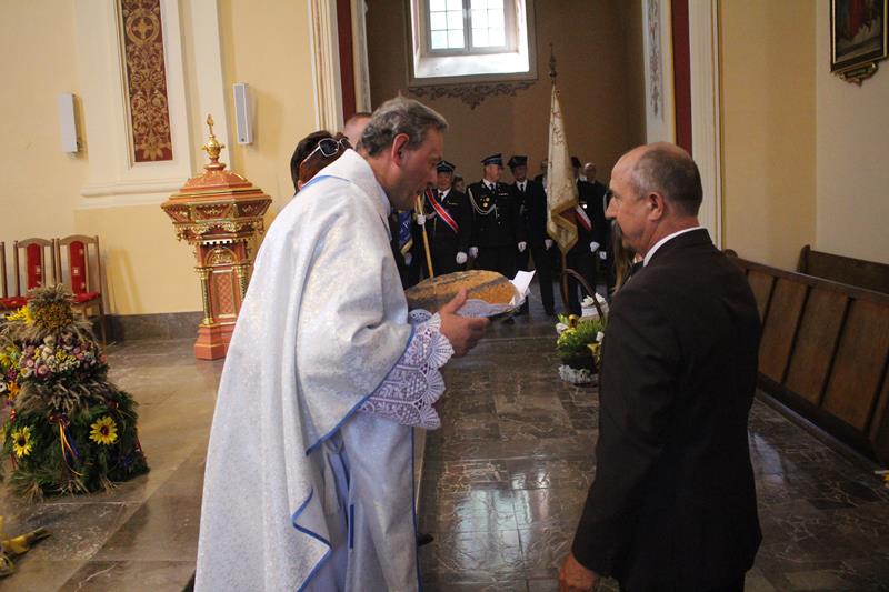 Uroczysta liturgia dożynkowa była okazją do modlitwy w intencji rolników. Uczestniczyli w niej przedstawiciele władz samorządowych, zaproszeni goście, sołtysi i rolnicy. Delegacje poszczególnych wsi przyniosły dary dożynkowe oraz bukiety kwiatów i ziół. Poświęcenia darów i bukietów dokonał ks. proboszcz Ryszard Kopczyński.