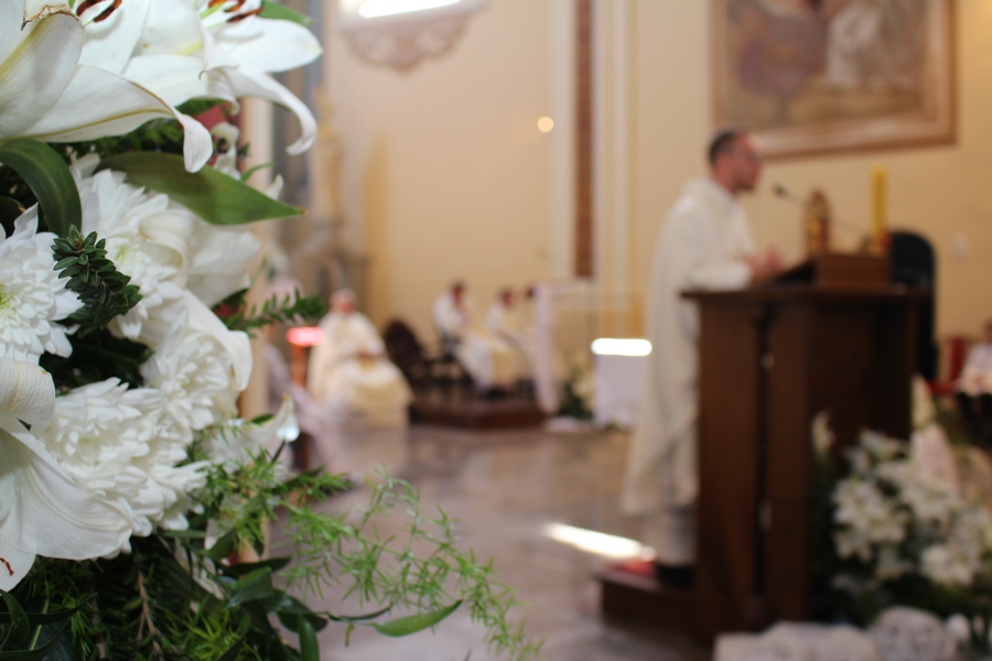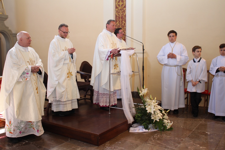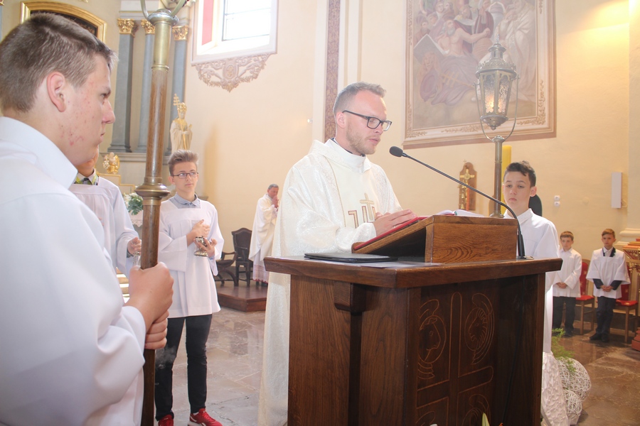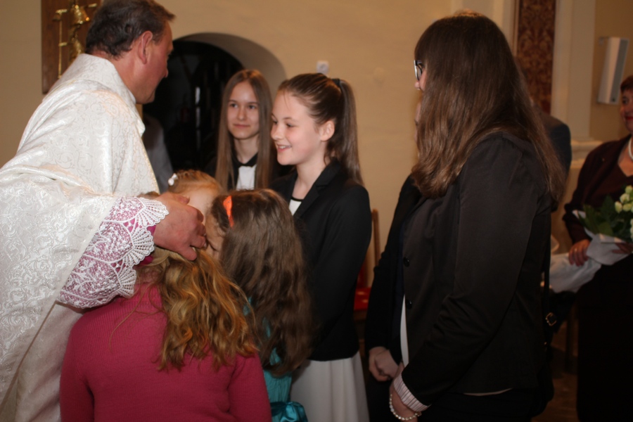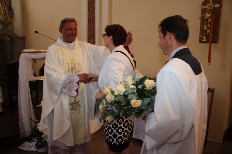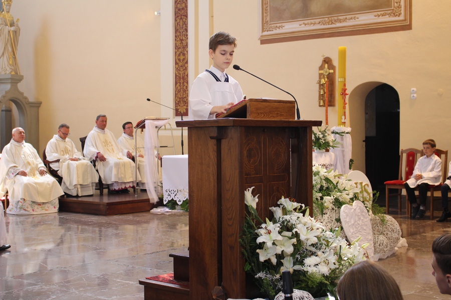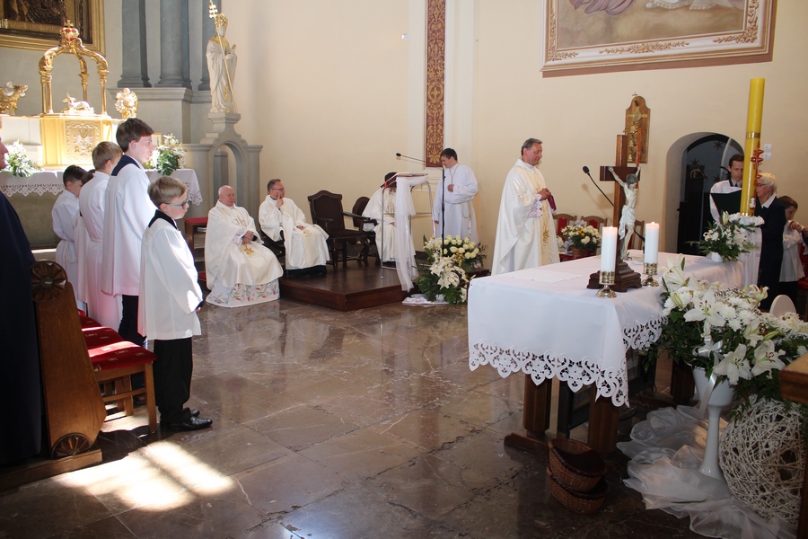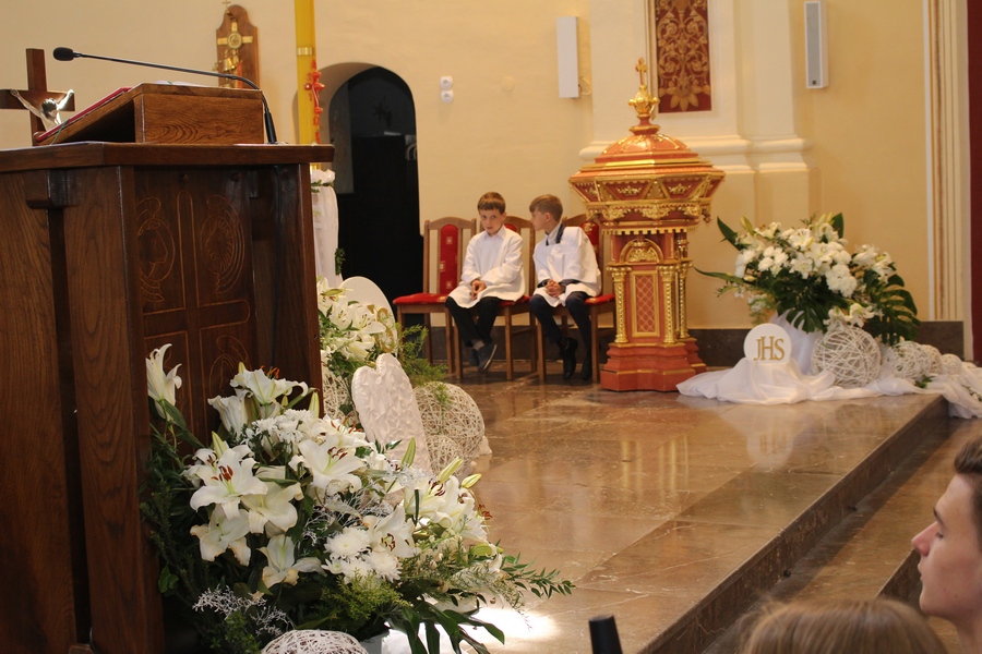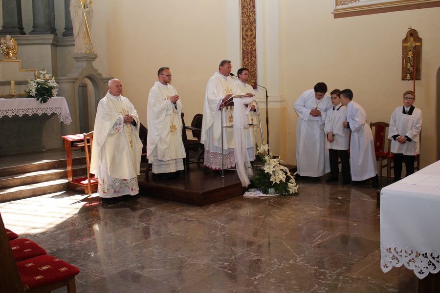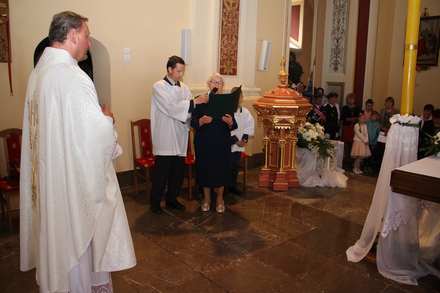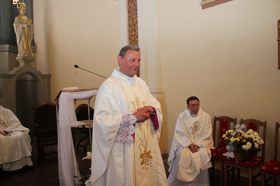 Uroczysta liturgia dożynkowa była okazją do modlitwy w intencji rolników. Uczestniczyli w niej przedstawiciele władz samorządowych, zaproszeni goście, sołtysi i rolnicy. Delegacje poszczególnych wsi przyniosły dary dożynkowe oraz bukiety kwiatów i ziół. Poświęcenia darów i bukietów dokonał ks. proboszcz Ryszard Kopczyński.