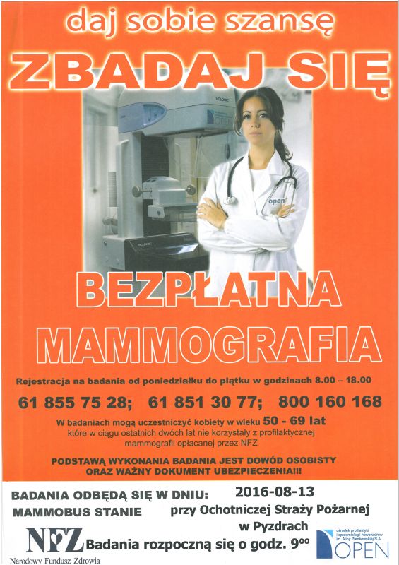 Zadanie dotyczy promocji zdrowego stylu życia oraz zapobieganie chorobom cywilizacyjnym. Adresatami akcji będą mieszkańcy gminy niezależnie od wieku. Otrzymają możliwość bezpłatnego pomiaru ciśnienia krwi, wagi ciała, cukru, obliczenia BMI. Mieszkańcy będą mieli możliwość skorzystania z konsultacji dietetyków. Organizatorzy będą też promować krwiodawstwo i zachęcać do bezinteresownej pomocy poprzez oddawanie krwi, bądź zarejestrowaniem się jako dawcy szpiku kostnego w ambulansie Regionalnego Centrum Krwiodawstwa i Krwiolecznictwa.