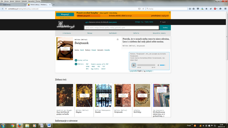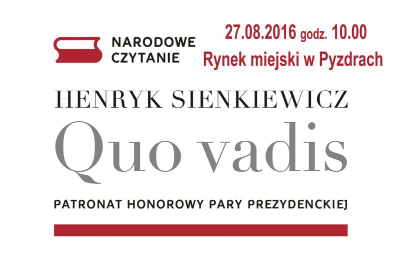 Narodowe Czytanie ,,Quo vadis'' tuż - tuż, czekamy na chętnych do wzięcia udziału w akcji. Wielkimi krokami zbliża się kolejna edycja akcji ,,Narodowe Czytanie’’, zainicjowanej przez Prezydenta Rzeczypospolitej Polskiej Bronisława Komorowskiego. W tym roku zwyciężyła wybitna polska powieść Henryka Sienkiewicza- ,,Quo vadis’’.