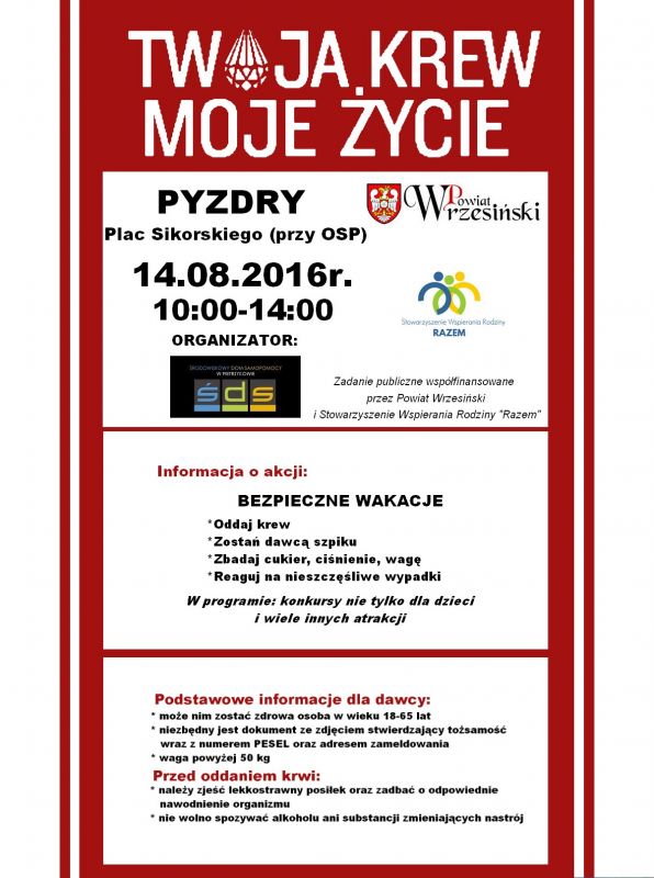 Happening w Pyzdrach odbędzie się na Placu Sikorskiego 14 sierpnia (tj. niedziela) w godz.10-14.