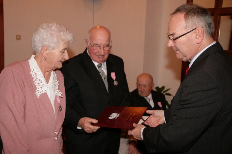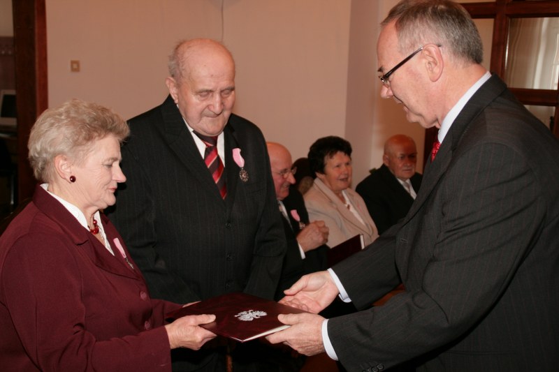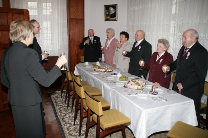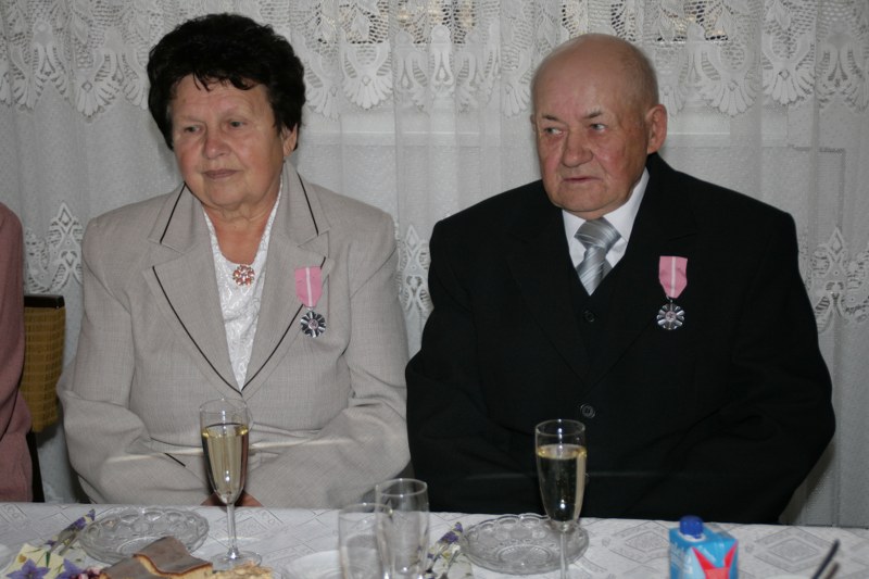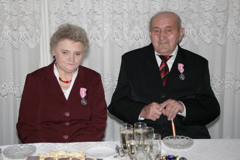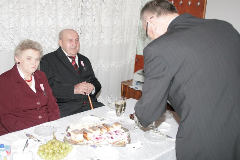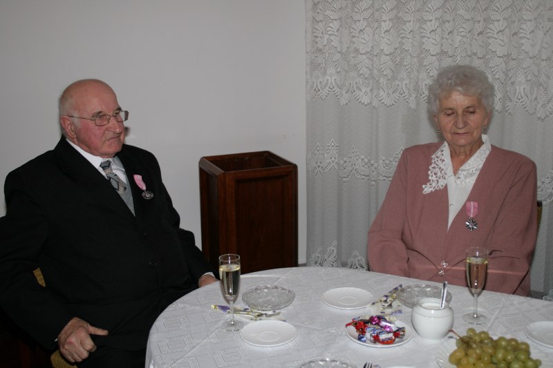 Dostojni jubilaci pamiątkowymi medalami byli dekorowani przez burmistrza Krzysztofa Strużyńskiego, który składał im jednocześnie gratulacje i życzenia. Otrzymali też kwiaty i prezenty. Lampką szampana wzniesiono toast za zdrowie i pomyślność na dalsze lata małżeństwa. Przy kawie i torcie wspominano minione lata. Wyrazy uznania należą się też nieobecnym na uroczystości: Mariannie i Andrzejowi Grodzkim z Pyzdr, Władysławie i Stanisławowi Kazimierskiemu z Wrąbczynkowskich Holendrów, Kazimierze i Mieczysławowi Kołodziejczykom z Pyzdr oraz Mariannie i Władysławowi Wróblewskim z Rudy Komorskiej.
